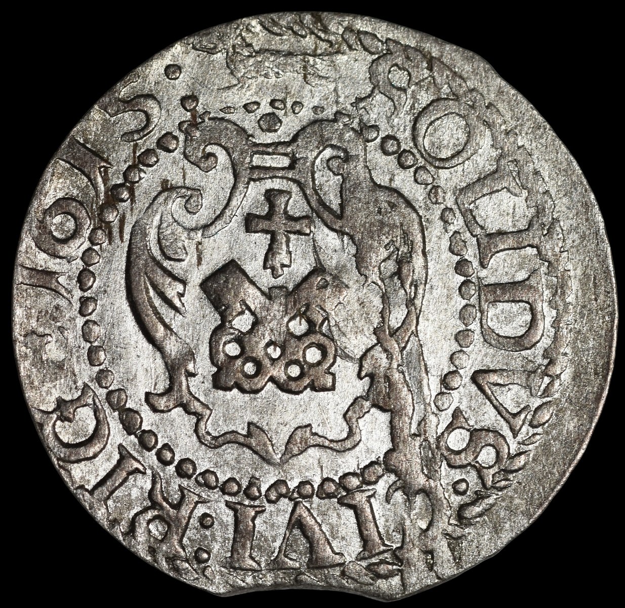 Pełna data 1615 kończy napis otokowy na rewersie.