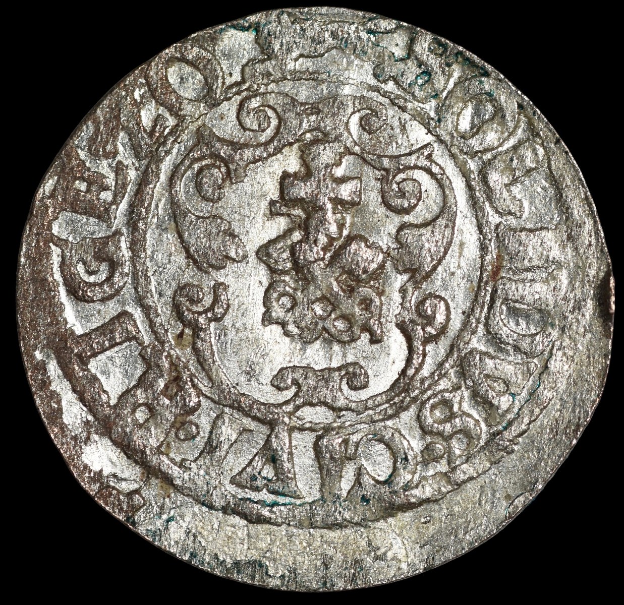 Liszka (znak mincerski Ottona von Meppena – burmistrza Rygi) w prawo dzieli