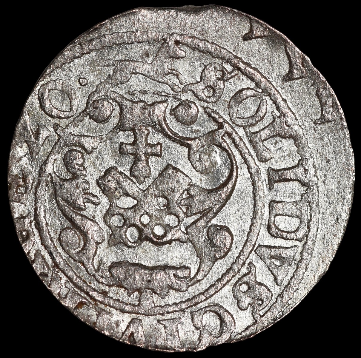 Liszka (znak mincerski Ottona von Meppena – burmistrza Rygi) w prawo dzieli