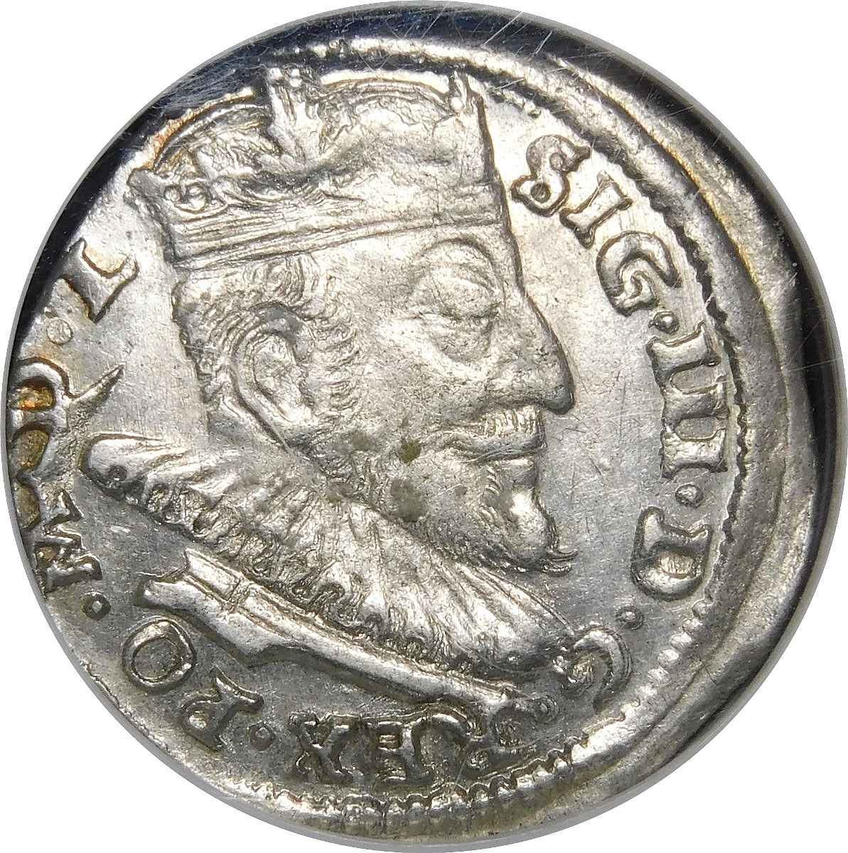 Odmiana napisowa z tytulaturą króla SIG III ... w otoku na awersie.