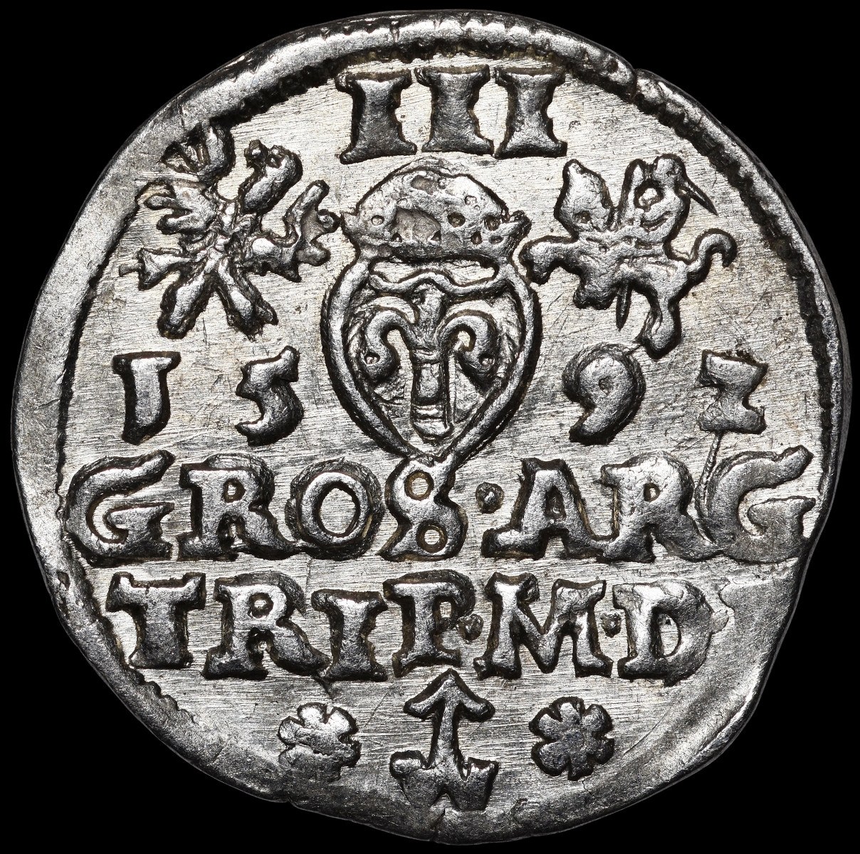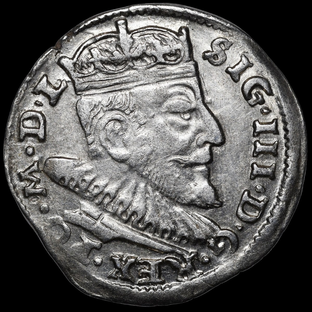 Odmiana napisowa z tytulaturą króla SIG III ... w otoku na awersie.