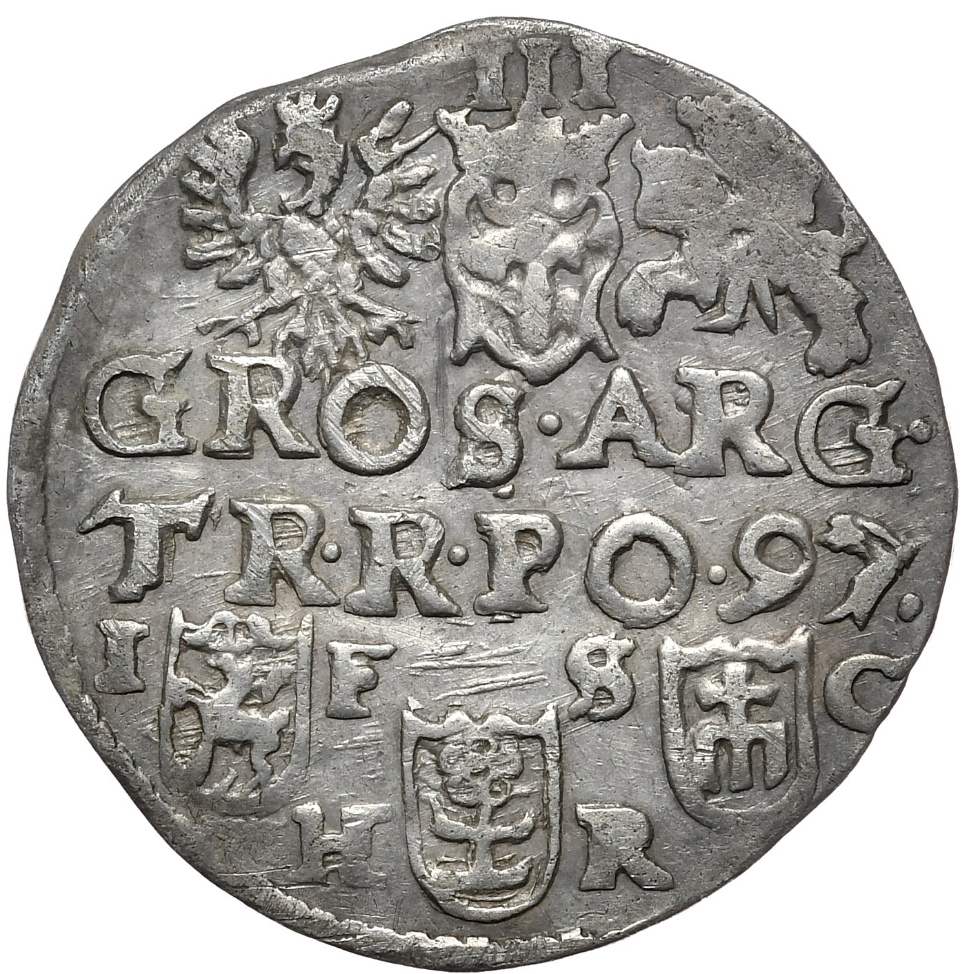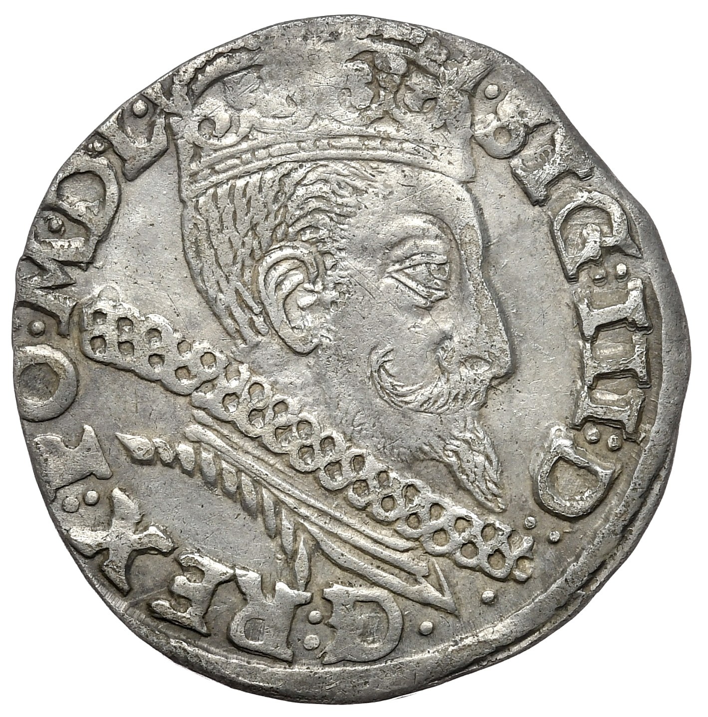 Odmiana ze spiczastą brodą króla. Starannie wybity portret władcy, ciemniejsza patyna