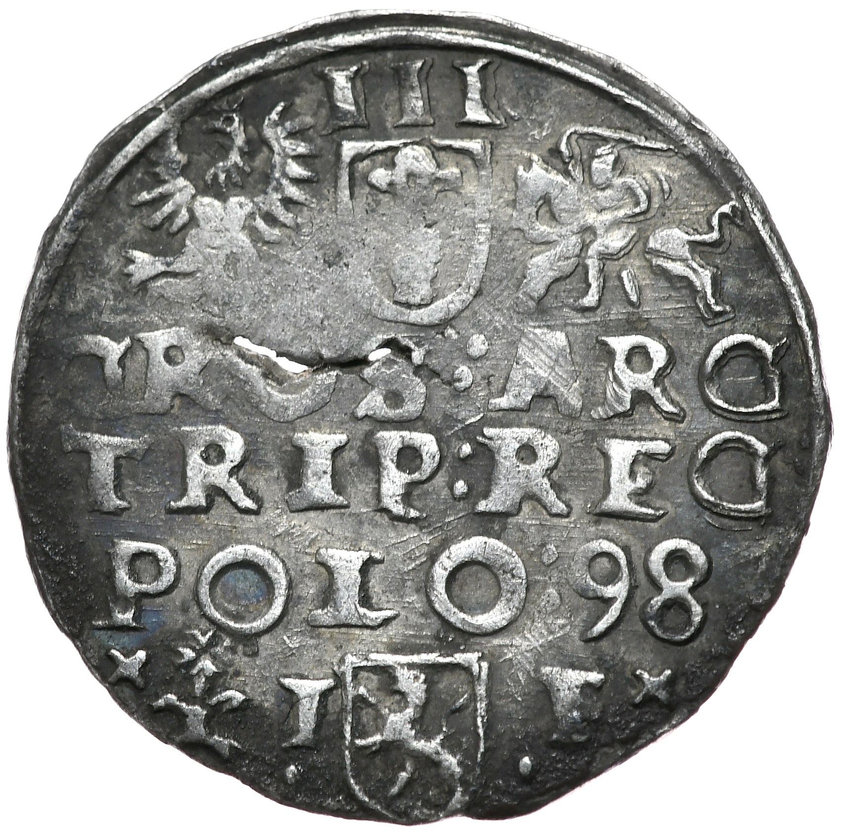 Dobry detal, ciemna patyna i obustronna wada blachy z perforacją.