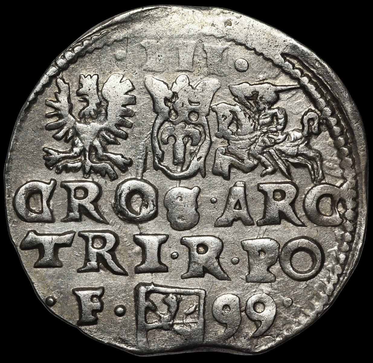 środku oraz literą F (oznaczenie mennicy wschowskiej) po lewej i skróconą datą