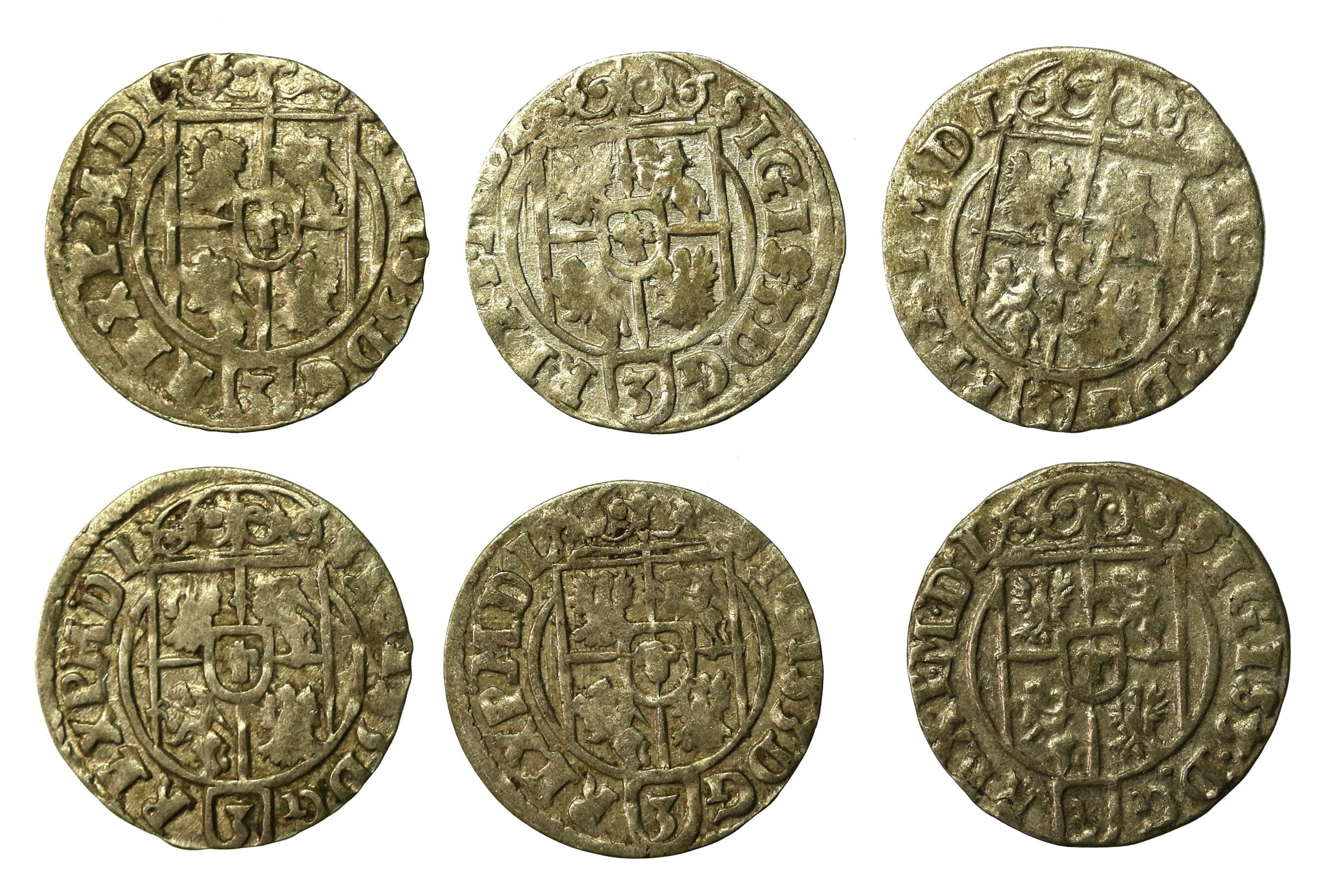 Zygmunt III Waza, zestaw półtoraków bydgoskich. Razem 6 sztuk. Stan zachowania 2
