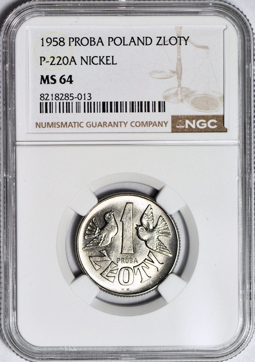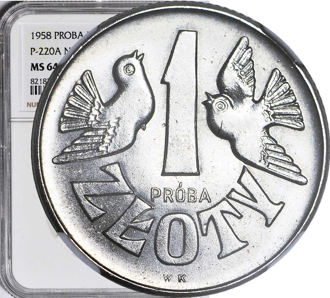 1 złoty 1958, Gołąbki, mennicze, RZADKOŚĆ, PRÓBA, NIKIEL