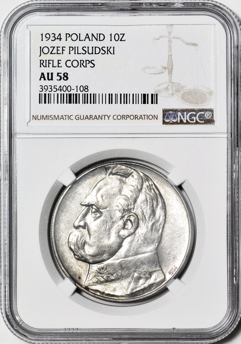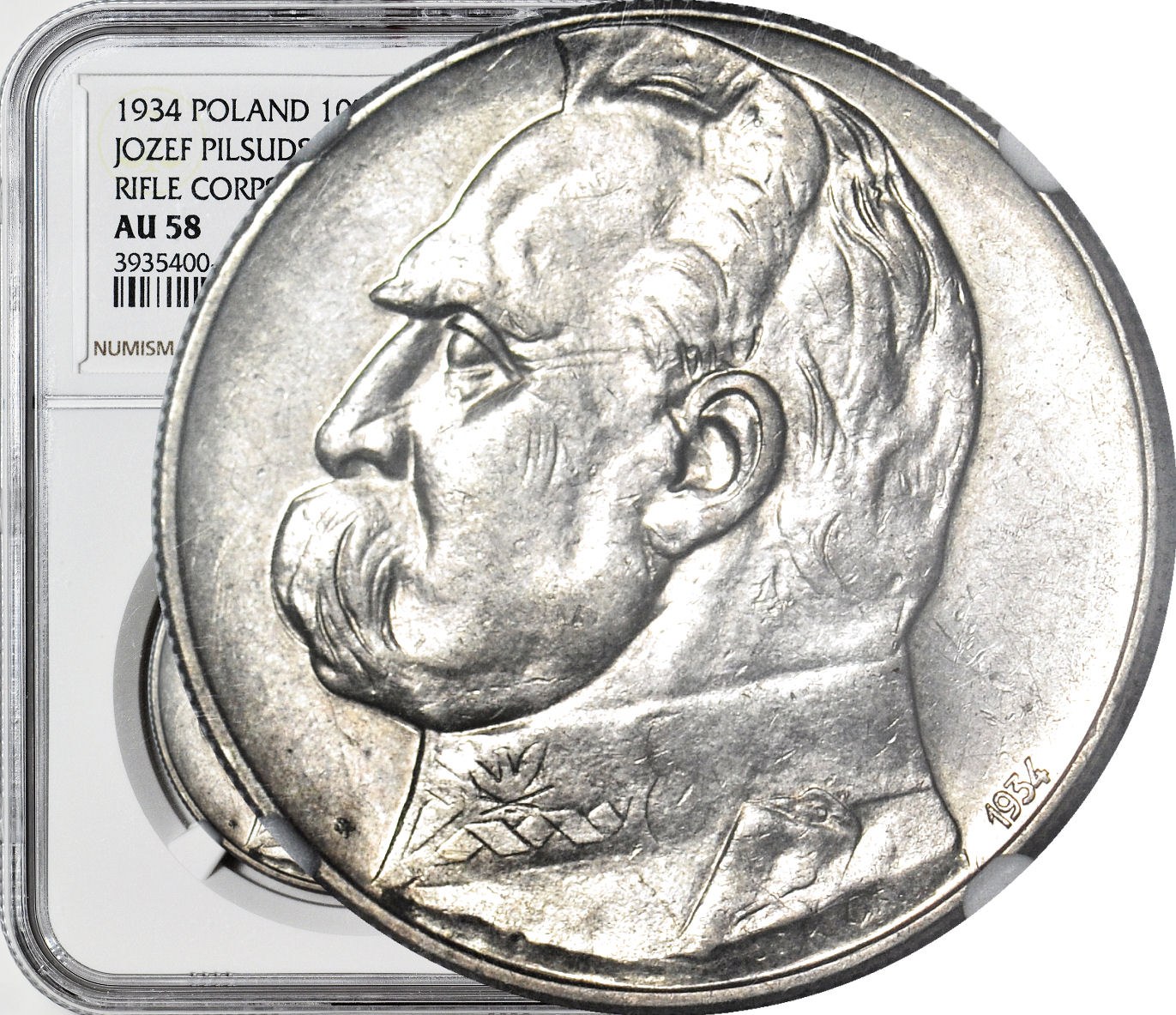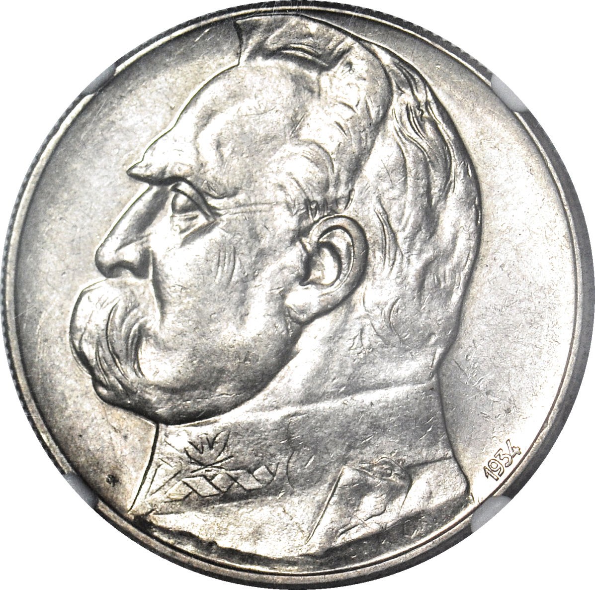 10 złotych 1934, Piłsudski, orzeł STRZELECKI, ok. menniczy
