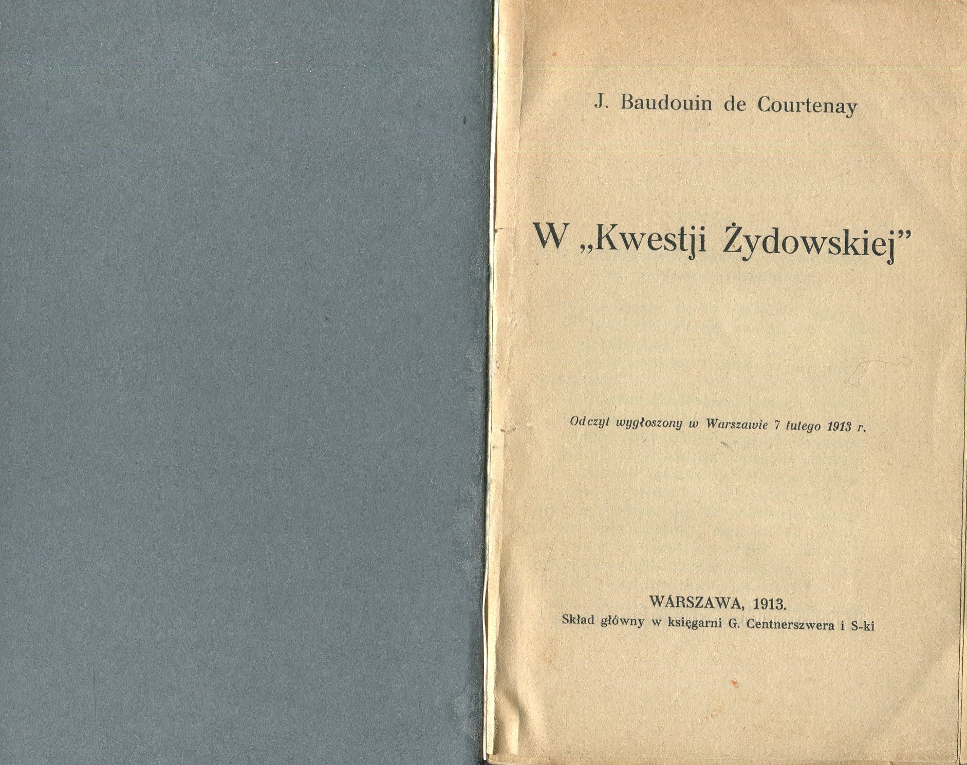 Głośna książka Jana Baudouin de Courtenay'a (1845-1929), polskiego językoznawcy, uznawanego za jednego z najwybitniejszych w historii tej dyscypliny. W swoich publicznych wystąpieniach otwarcie krytykował antysemityzm i