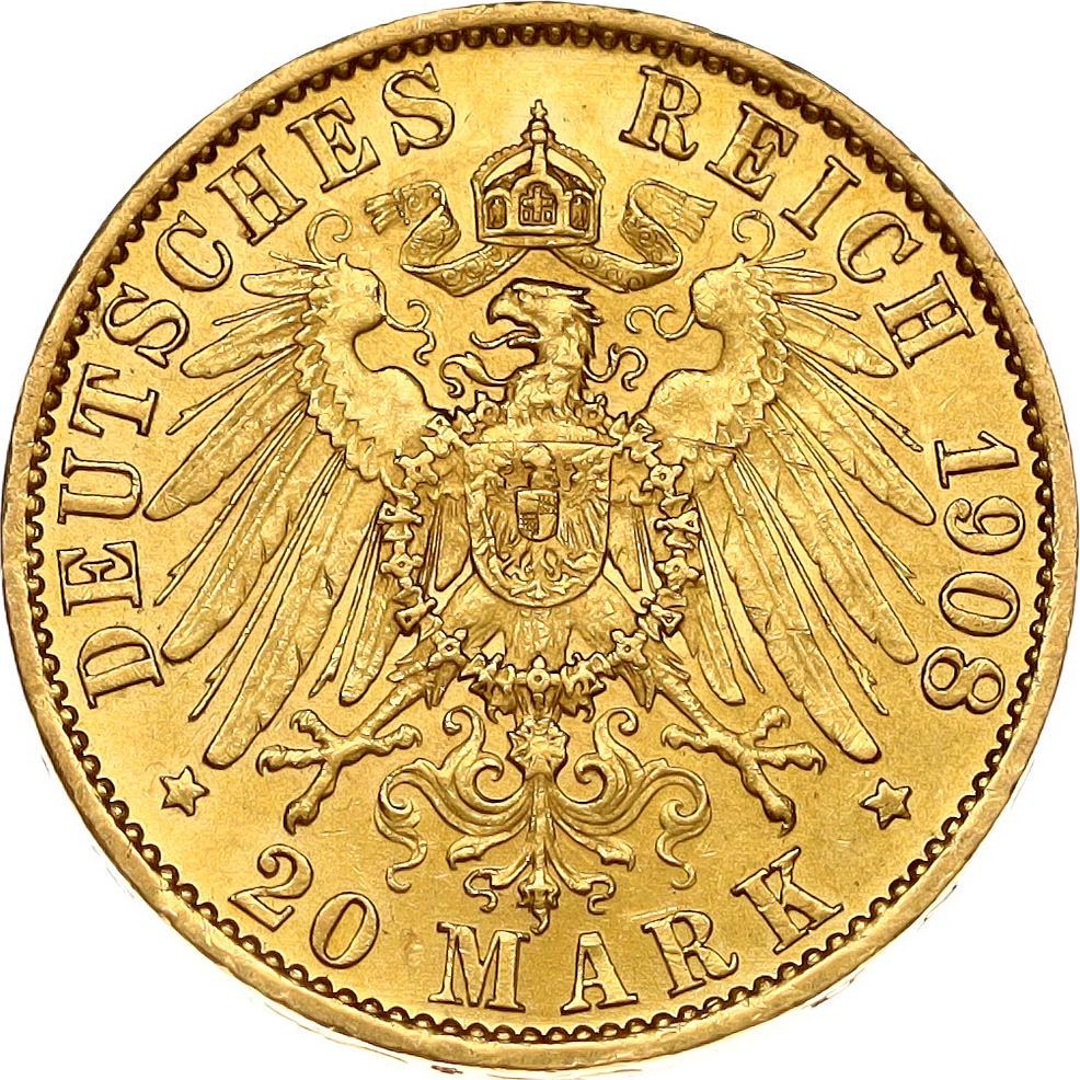 Germany, Prussia. Wilhelm II (1888-1918). 20 Mark 1908 A. Gold 7.94 g. KM 521.