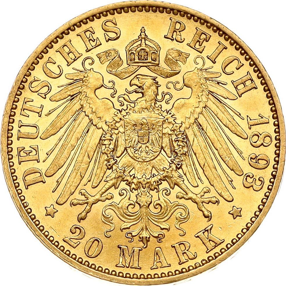 Germany, Prussia. Wilhelm II (1888-1918). 20 Mark 1893 A. Gold 7.94 g. KM 521.