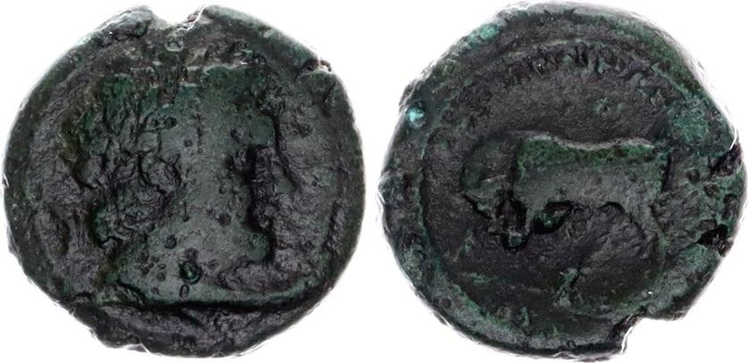 Bucetti 22; Copper 4,77 gr; Obv: Laureate head of Ares right. Rev: Bull charging left.