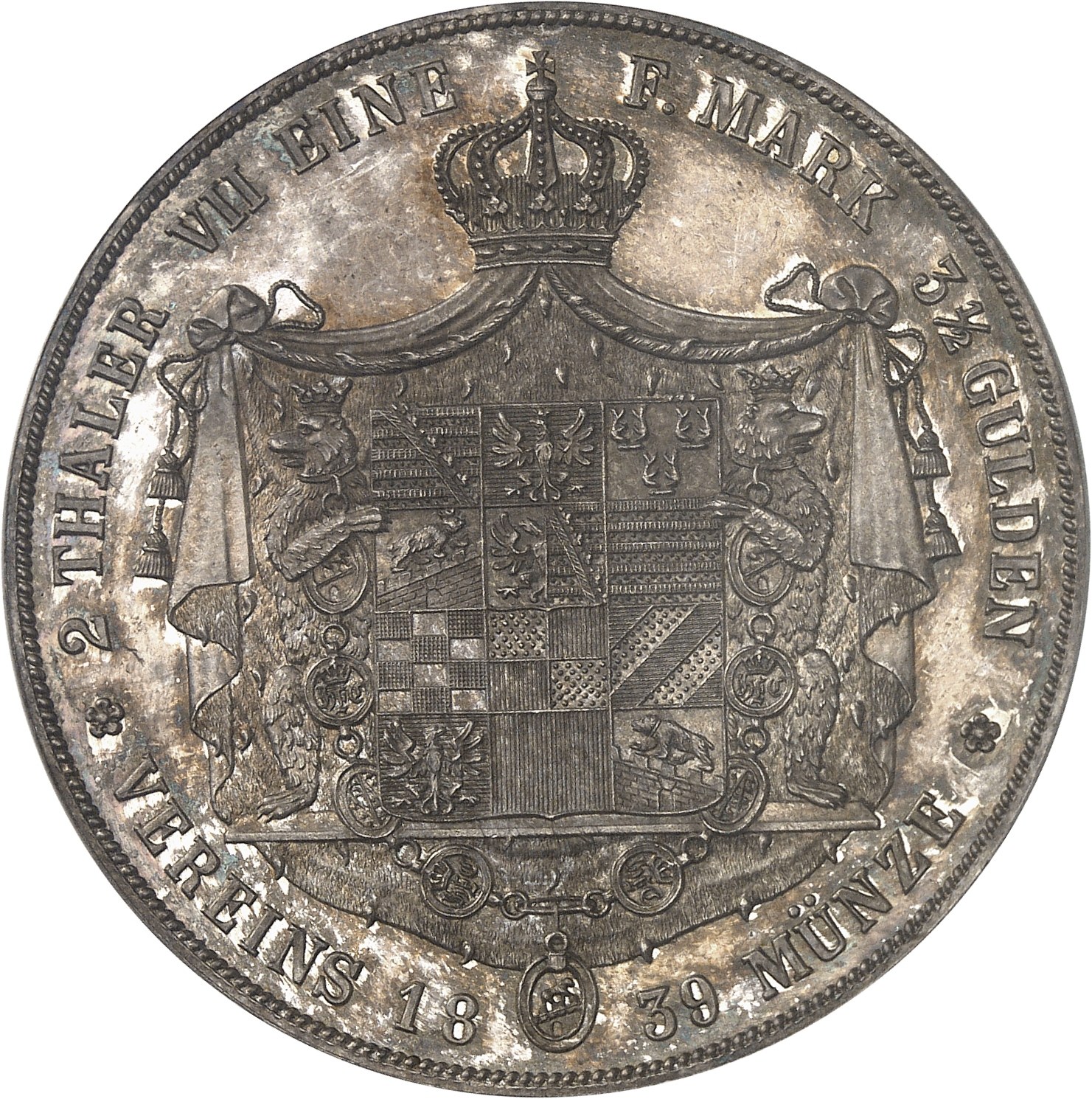Anhalt-Dessau, Léopold Frédéric (1817-1871). Double thaler (3 1/2 florins) 1839, A, Berlin. PCGS MS63+ (33398572).