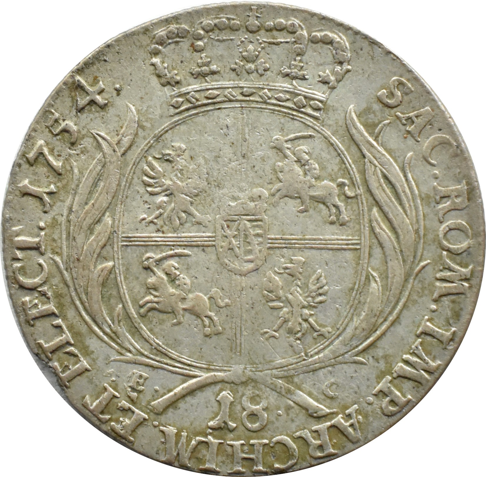 Sasi, August III Sas (1733-1763), ort (18 groszy) 1754 E.C., mennica Lipsk
