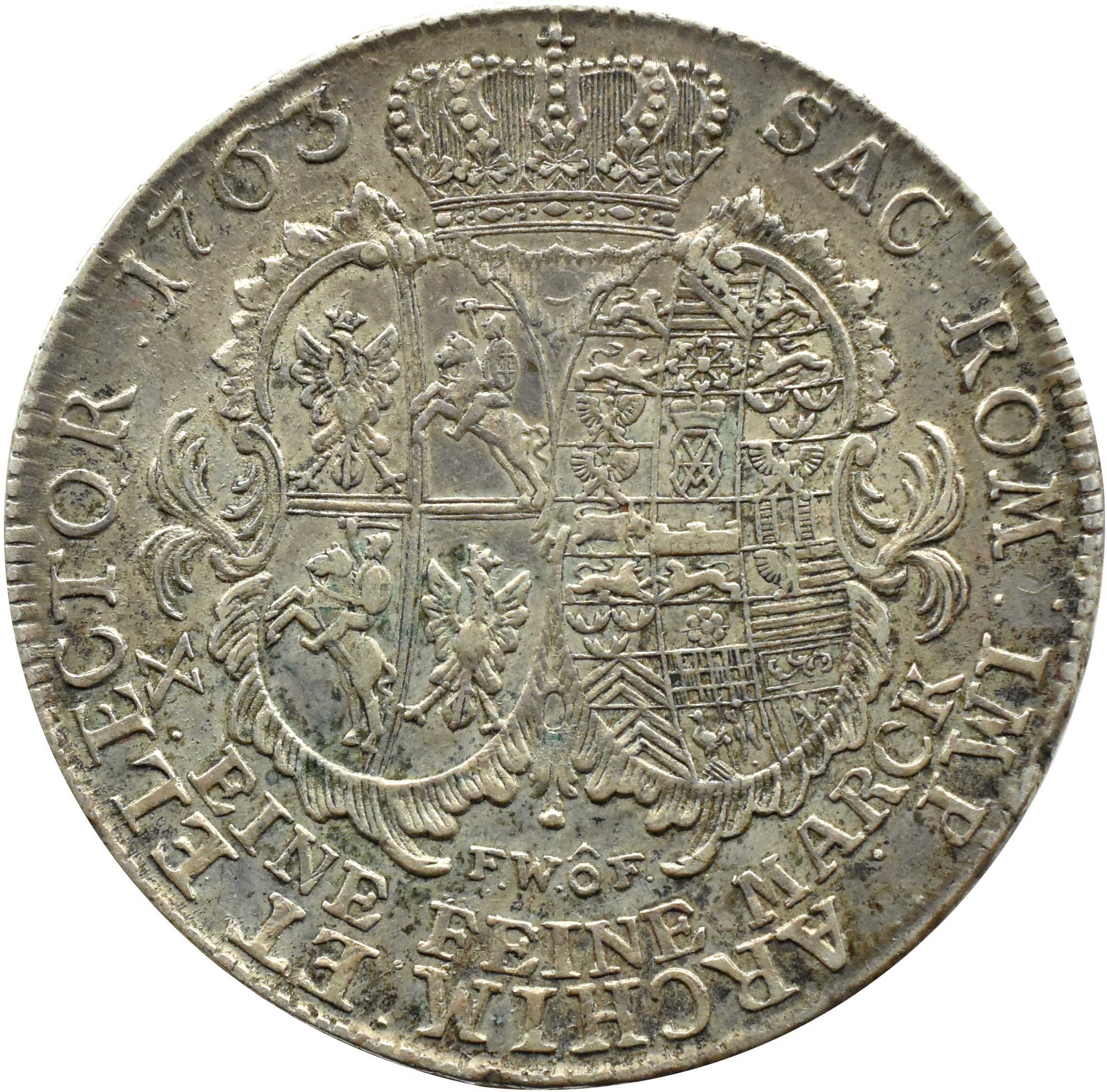 legenda: X EINE FEINE MARCK i w otoku SAC ROM IMP ARCHIM ET ELECTOR 1763
