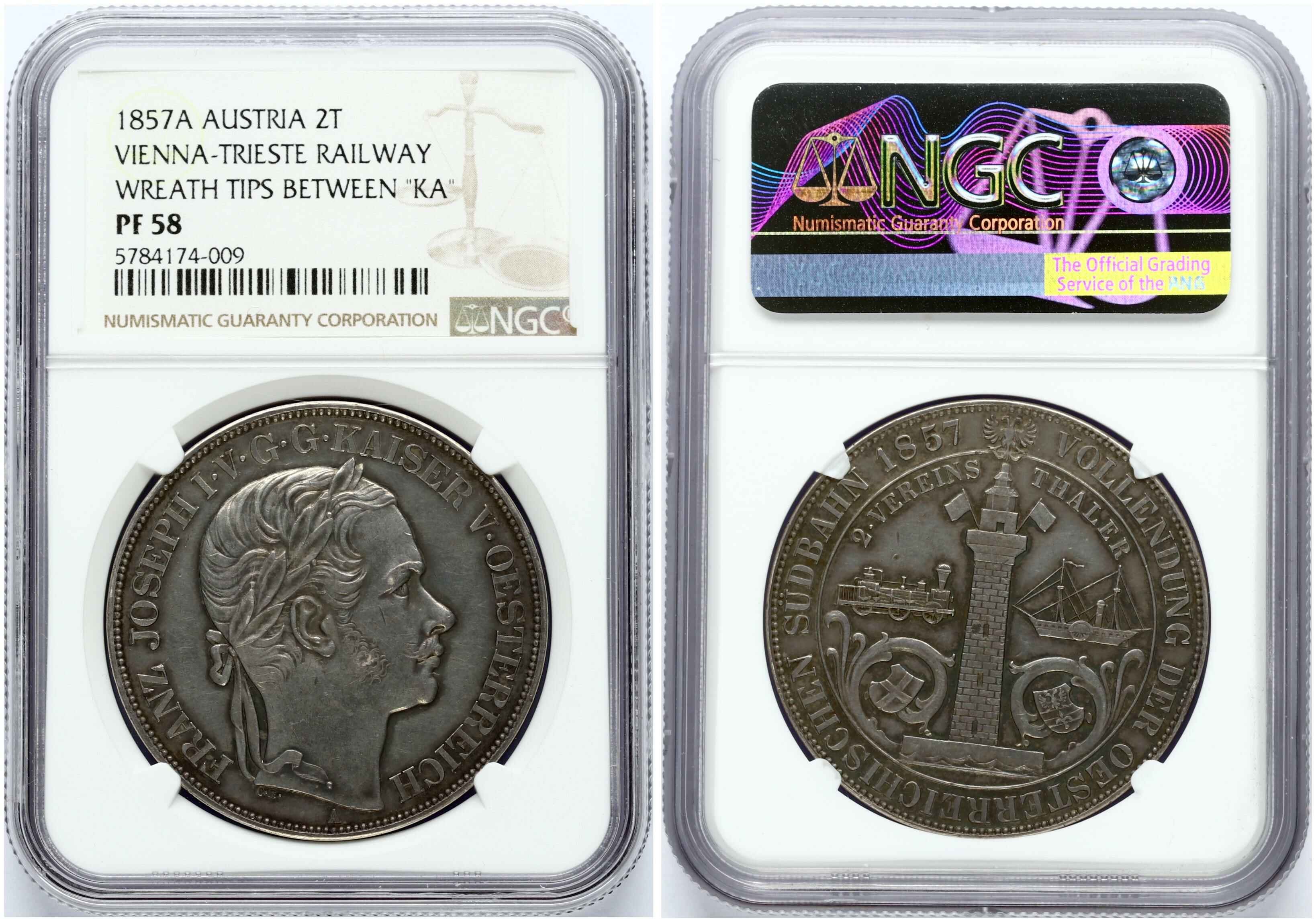 Austria 2 Taler 1857 A Vienna-Trieste Railway NGC PF 58