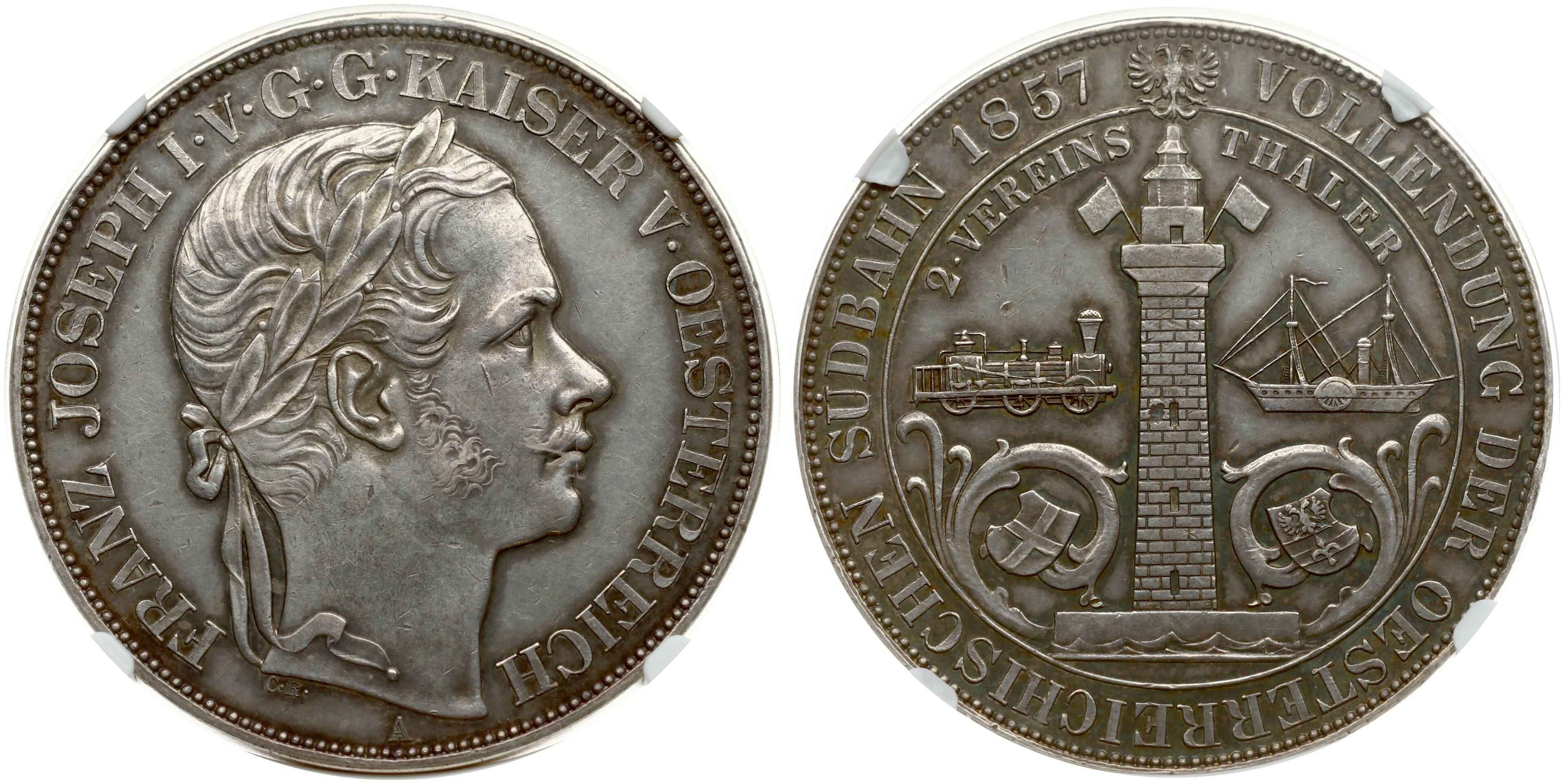Austria. Franz Joseph I (1848-1916). Taler 1857 A Vienna-Trieste Railway. Silver. Dav. 20; KM 2246.1; X M10; Her 821. NGC PF 58