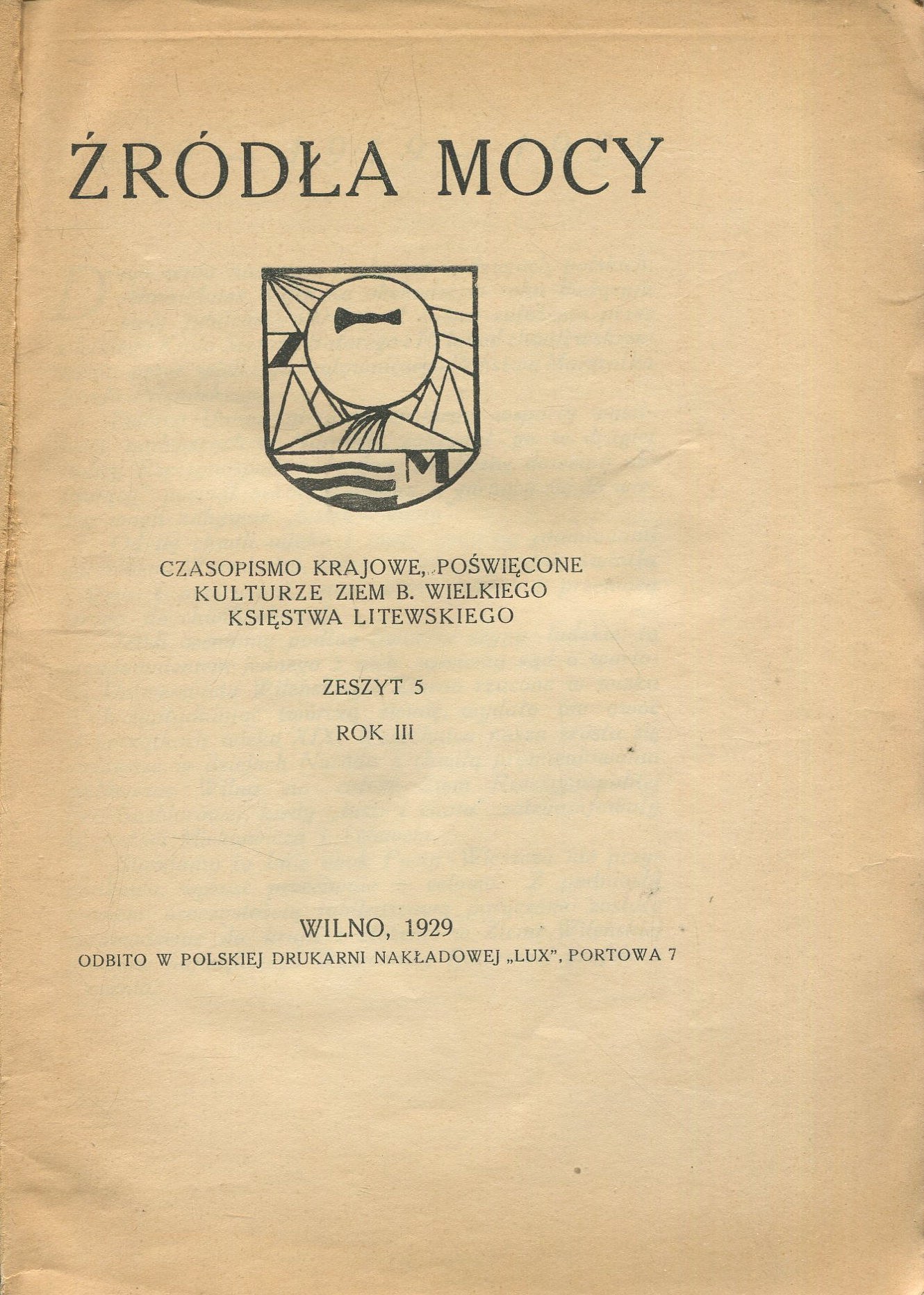 Czasopismo poświęcone kulturze regionalnej ziem b. Wielkiego Księstwa Litewskiego. Numer 5 z 1929 roku. W treści m.in.: O Poznaniu głos z Wilna (Mieczysław Limanowski). Bohatyrowicze (Bronisław Rydzewski). Legendy wileńskie i nowogródzkie (Wanda N. Dobaczewska). Bazylianie (Helena Romer-Ochenkowska). Wspomnienia dni mickiewiczowskich w Paryżu (Ferdynand Ruszczyc). Troki (Jadwiga Wokulska). Światło z gór (Emil Zegadłowicz). Do genezy "Rymonda" Al. Fredry (Stanisław Pigoń). Wytwórczość roślinna w województwie wileńskim w świetle ostatniej statystyki (Zygmunt Hartung). O dawnych jarmarkach w Zelwie i Grodnie (Józef Jodkowski). Z Wilna do Sopoćkiń (Mieczysław Limanowski).