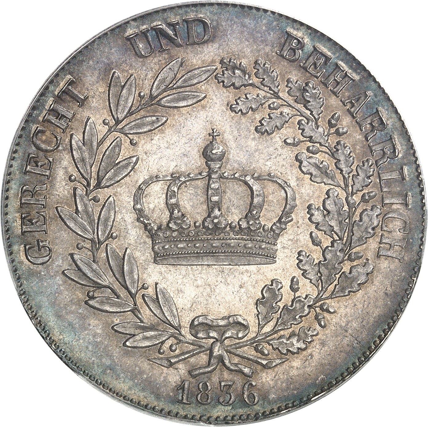 Bavière, Louis Ier (1825-1848). Thaler à la couronne (kronenthaler), 2e type 1836, Munich. PCGS MS64 (33396998).