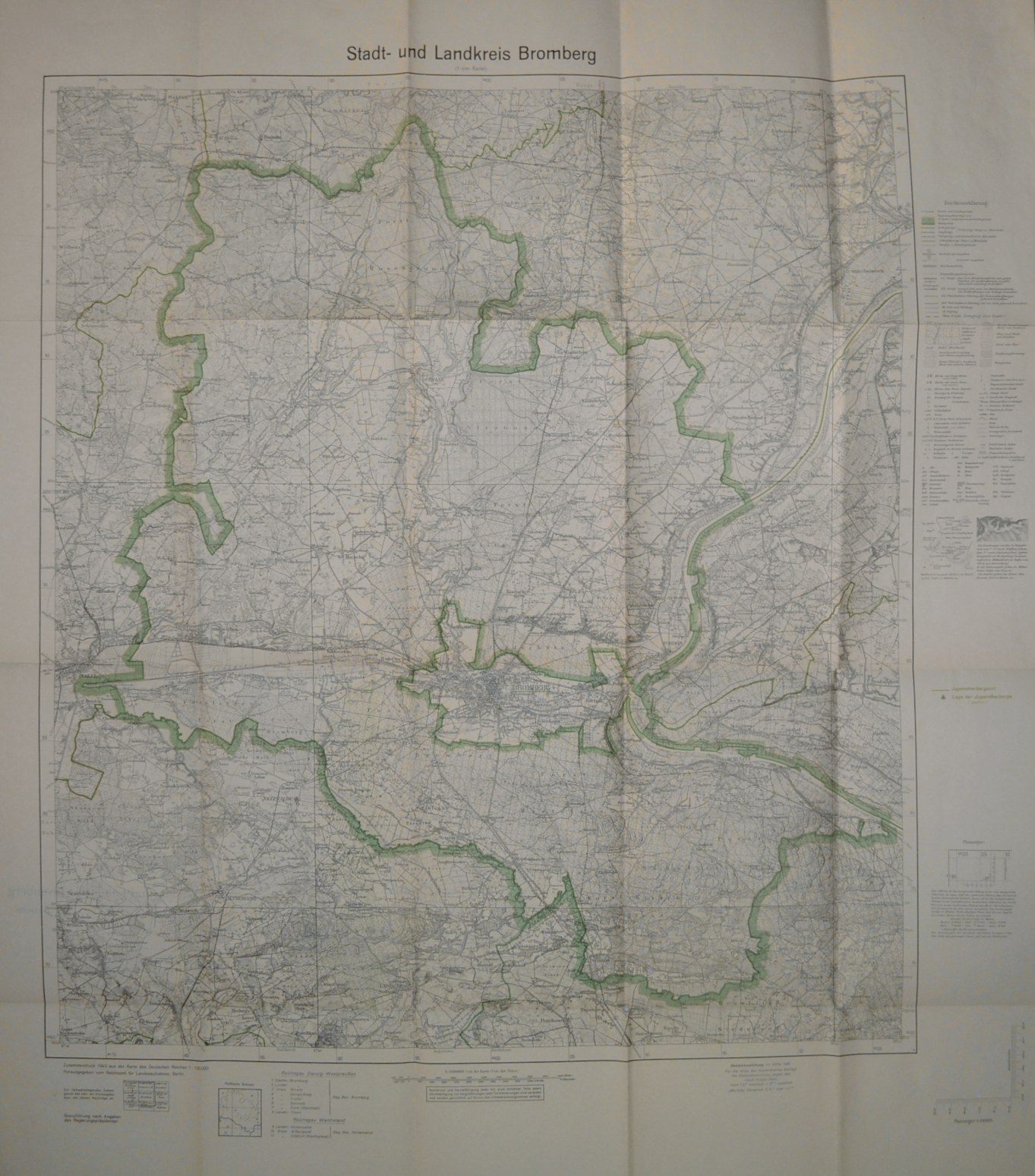 [BYDGOSZCZ, powiat] Stadt- und Landkreis Bromberg. 1:100 000. [Zusammendruck 1943 aus der Karte des Deutschen Reiches 1:100 000. Hrsg. vom Reichsamt für Landesaufnahme, Berlin]. 80x68 cm.