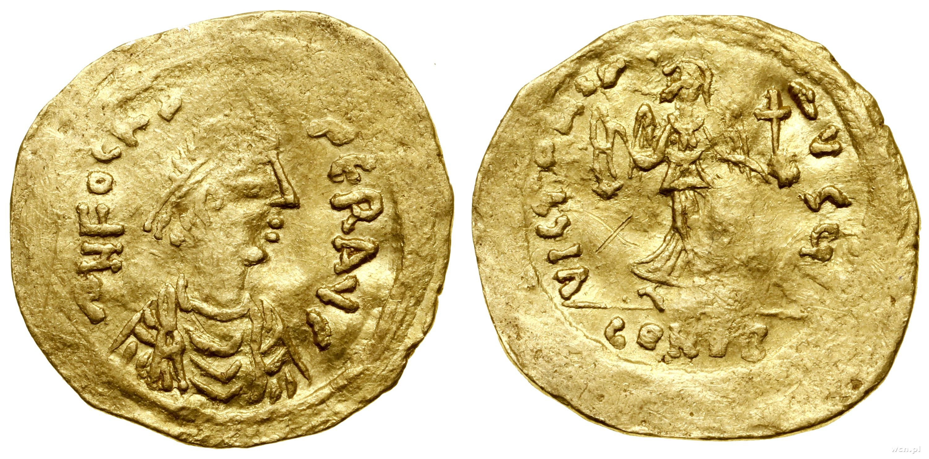 Aw: Popiersie w prawo, D N FOCAS PER AVG, Rw: Wiktoria z wieńcem i globem krocząca w prawo, VICTORIA AVGЧ , w odcinku CONOB