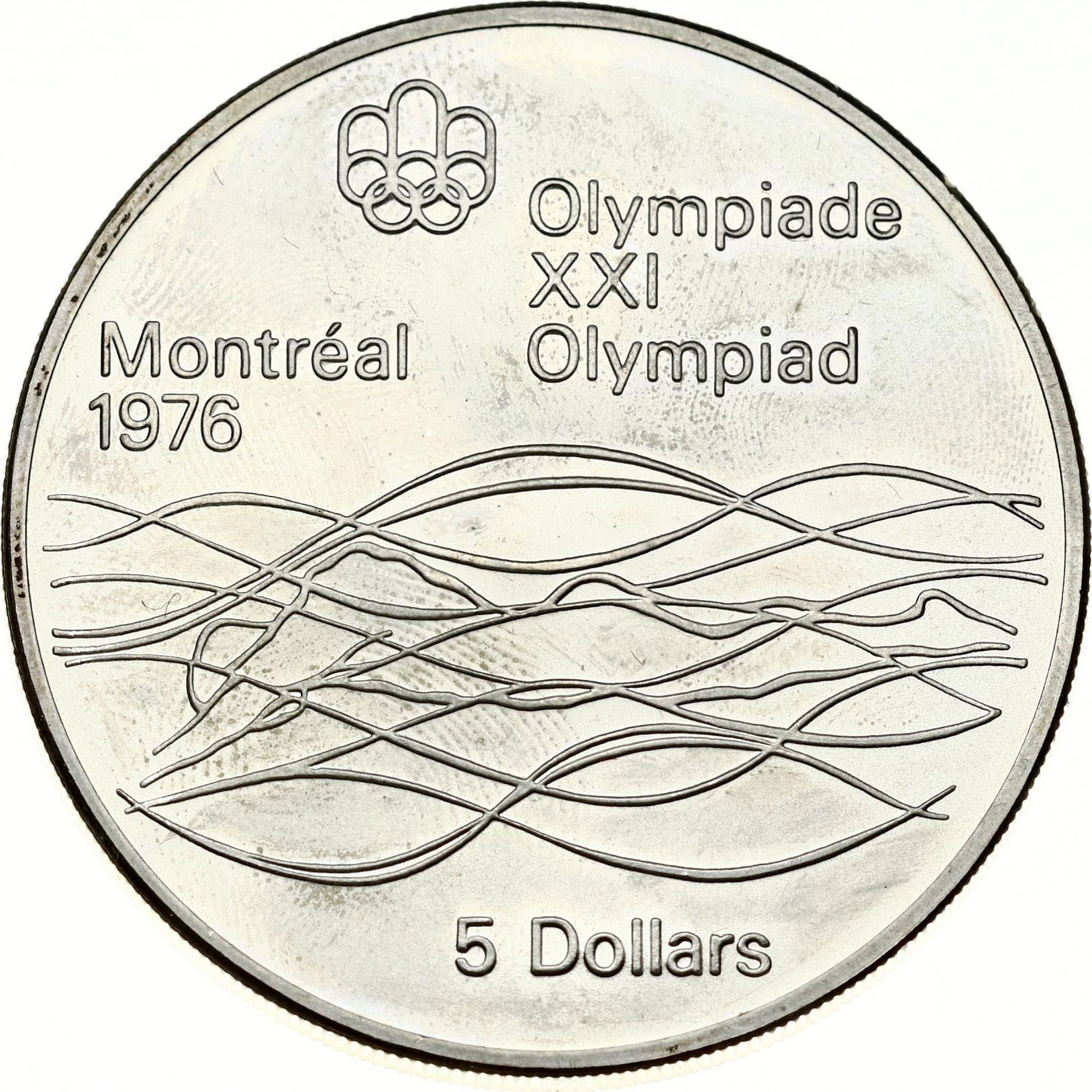 Canada 5 Dollars 1975 Swimming. Elizabeth II (1952-2022). 1976 Olympics Montreal. Silver .925, 24.3 g. KM-100