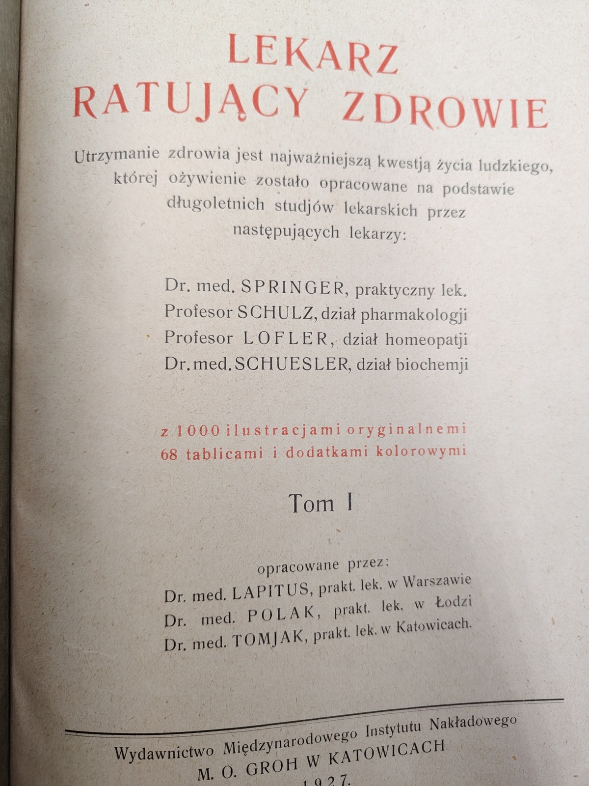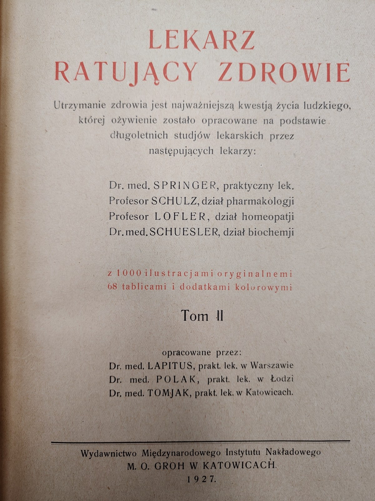 Utrzymanie zdrowia jest najważniejszą kwestją życia ludzkiego, której ożywienie zostało oprac. na podstawie długoletnich studjów lekarskich przez następujących lekarzy: Prof. Winternitz, Schulz, Lofler, Schuesler, Springer,
