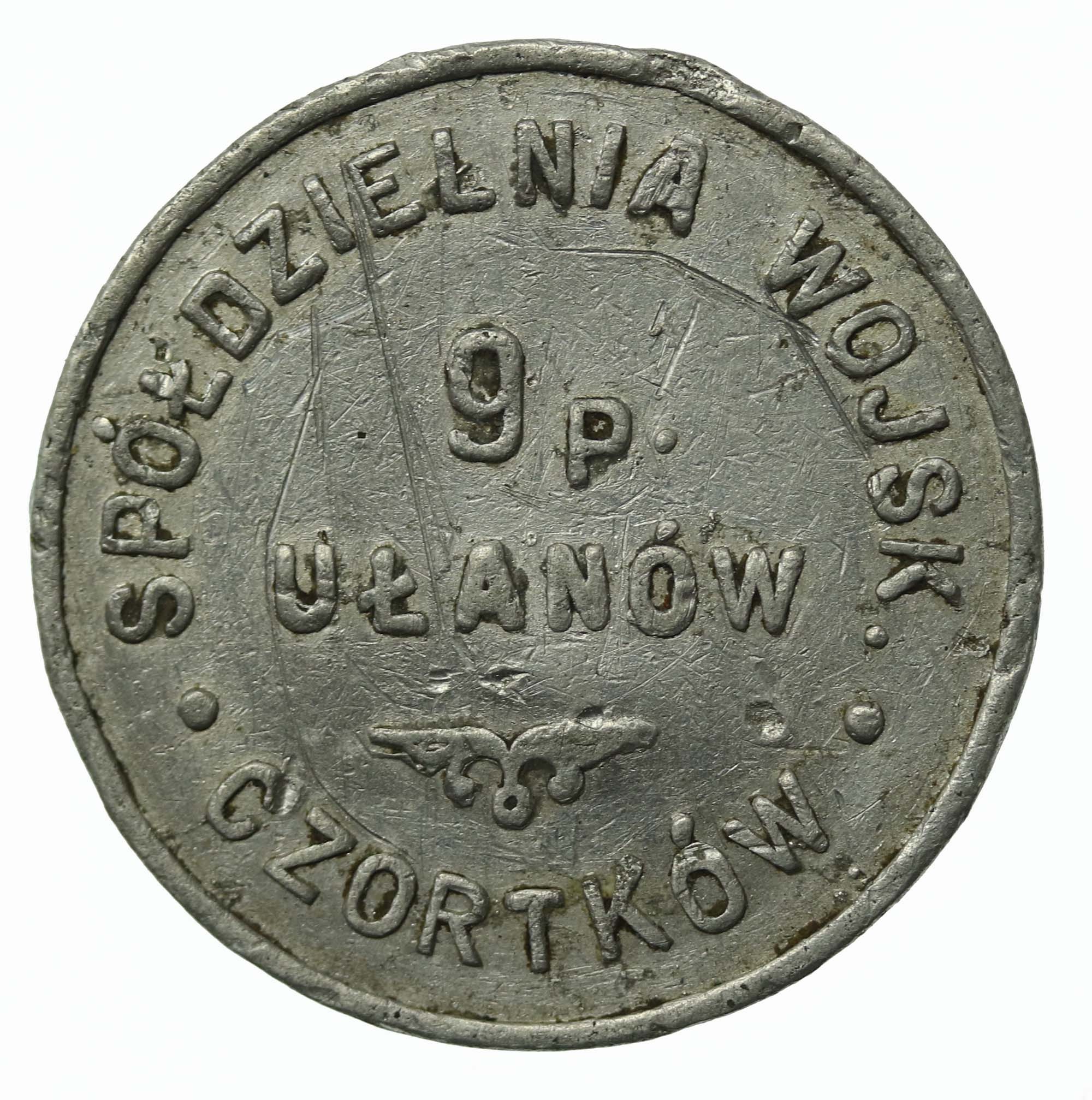 Czortków, 9 Pułk Ułanów, 1 złoty. Stan zachowania 3/3+. Literatura: Jakubowski 22 (R7b)