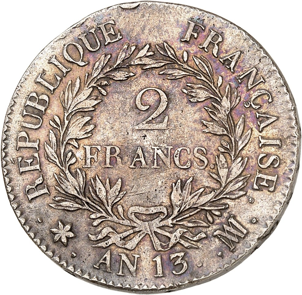 Premier Empire / Napoléon Ier (1804-1814). 2 francs calendrier révolutionnaire An 13 (1805), MA, Marseille.
