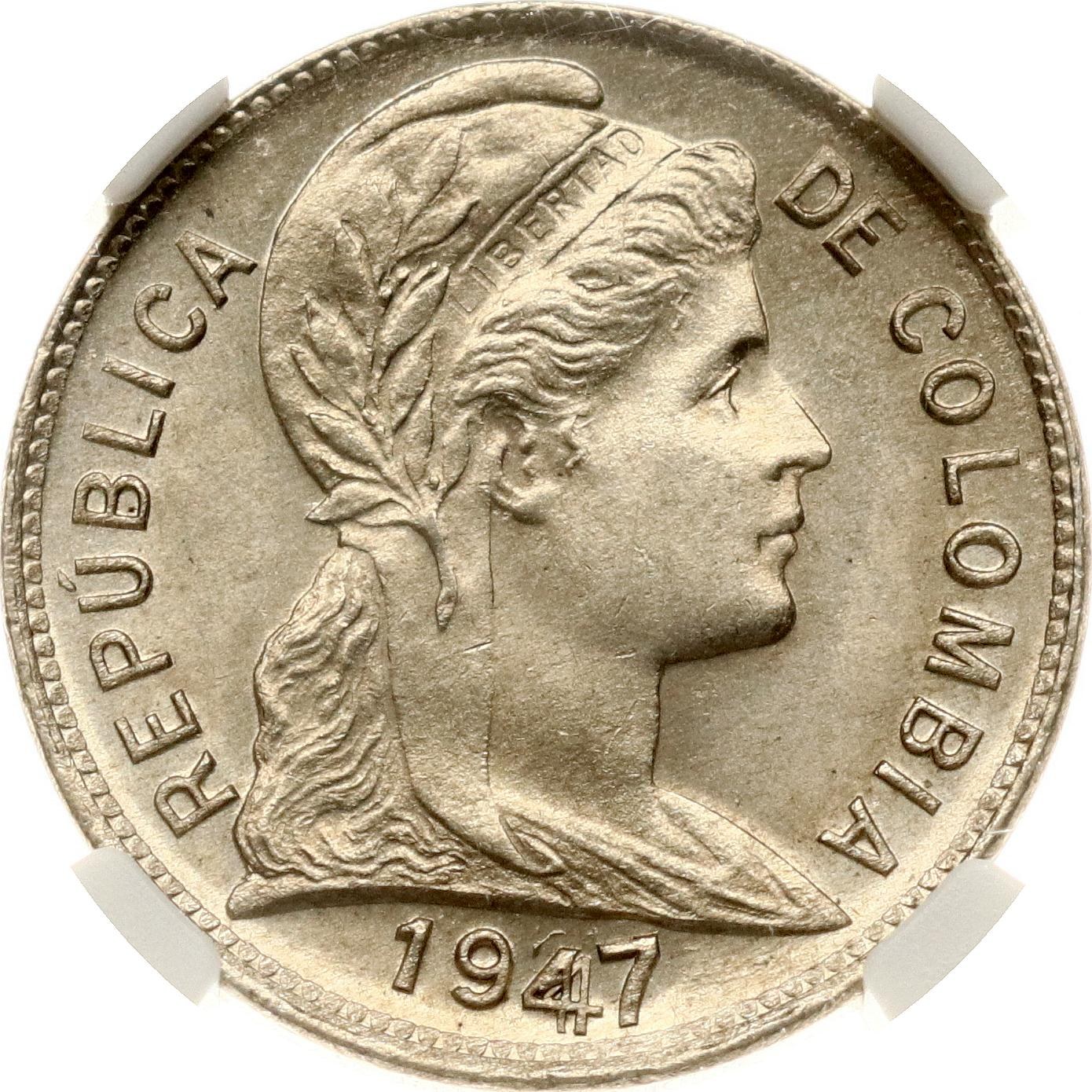 Colombia 2 Centavos 1947 B NGC MS 65