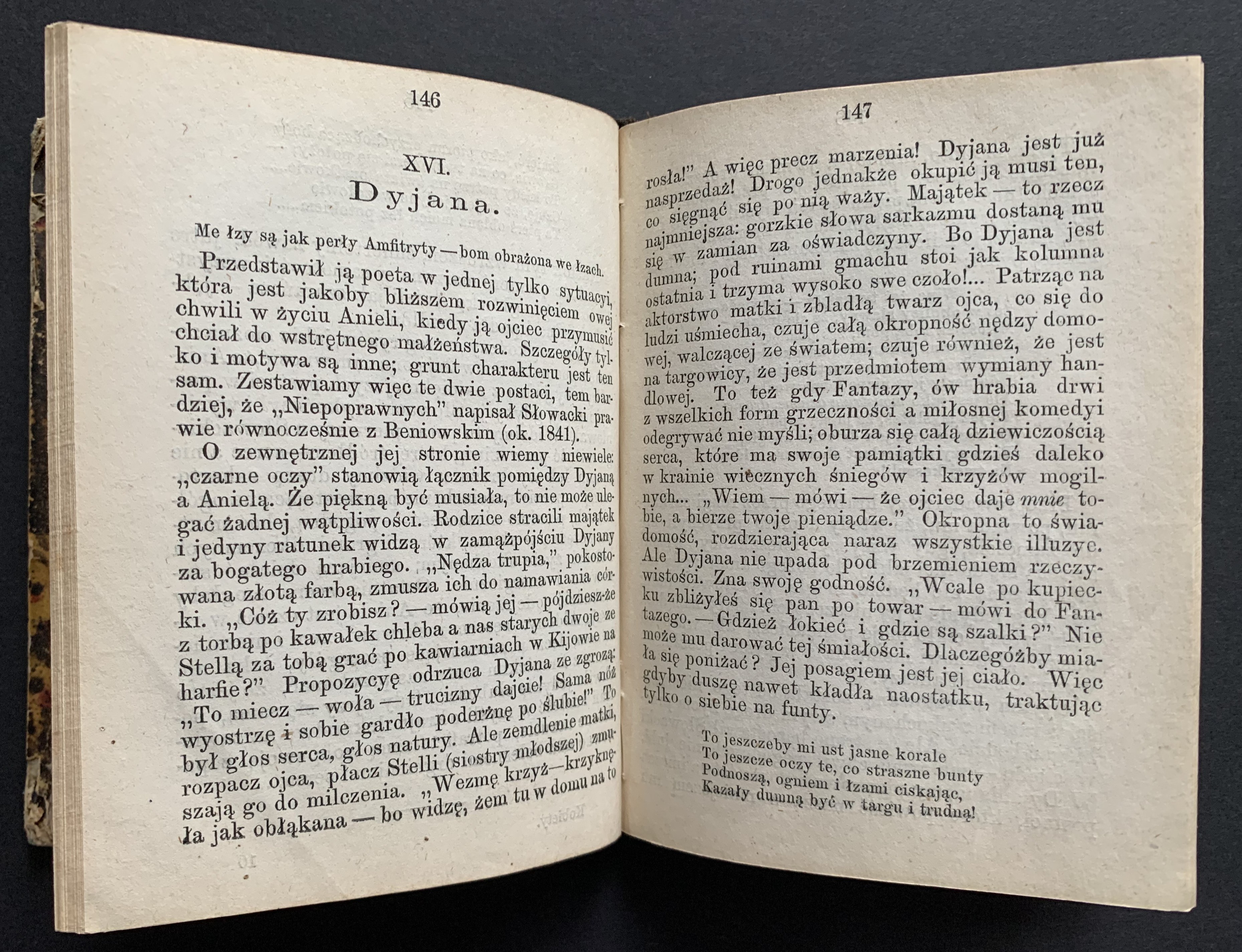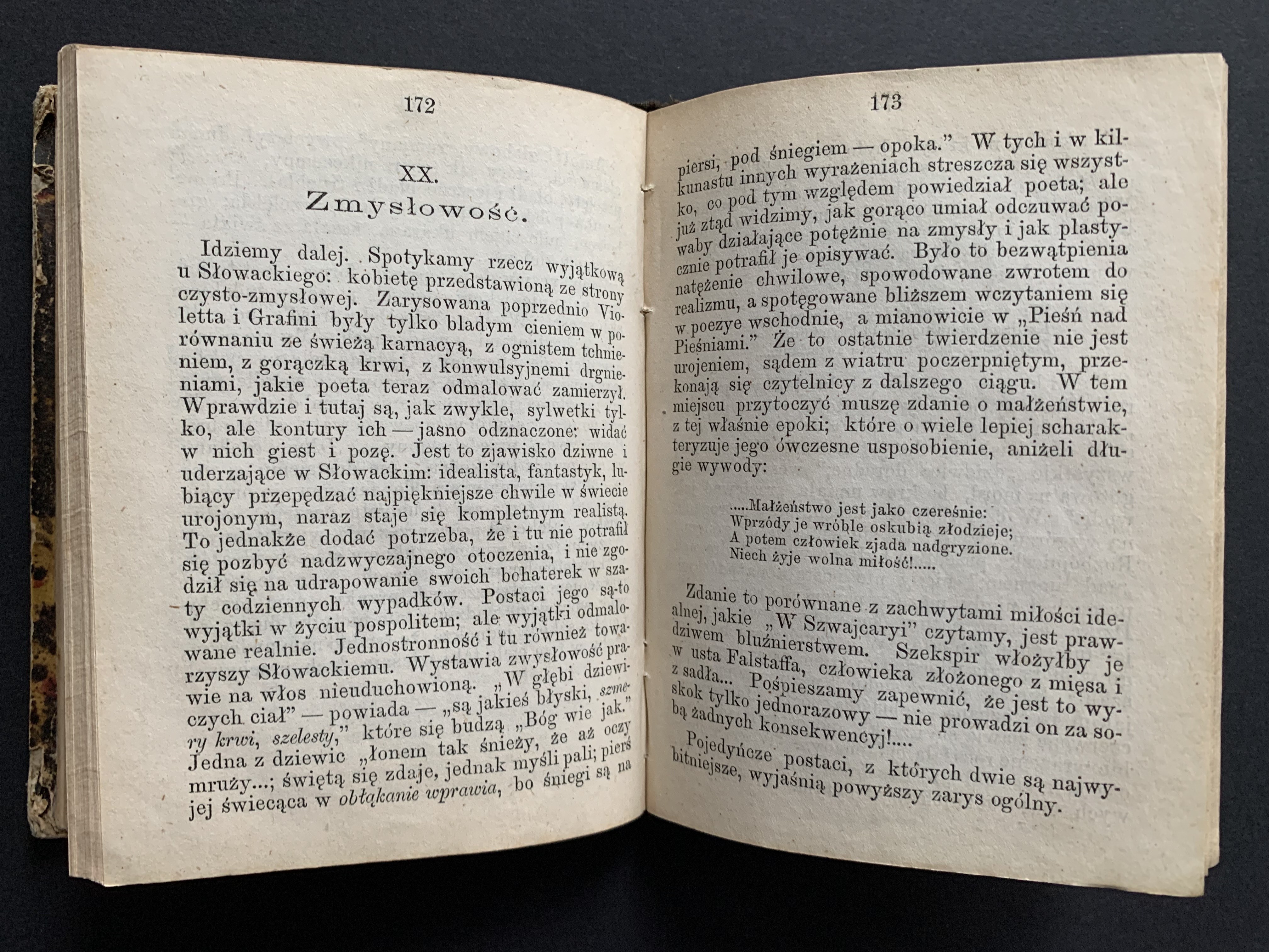 Format:11x14cm. Stron:240. Oprawa biblioteczna, dwa wpisy własnościowe na karcie tytułowej, adnotacje w tekście, zaplamienia.