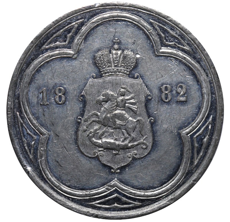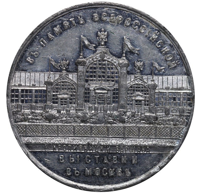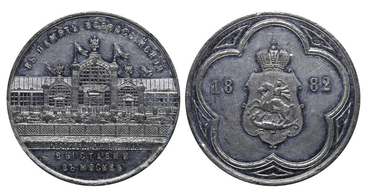Russian Empire, (Poland, Warsaw), Tin Medal (Token), 1882 year, In Commemorating the All-Russian Industrial and Art Exhibition of 1882 in Moscow