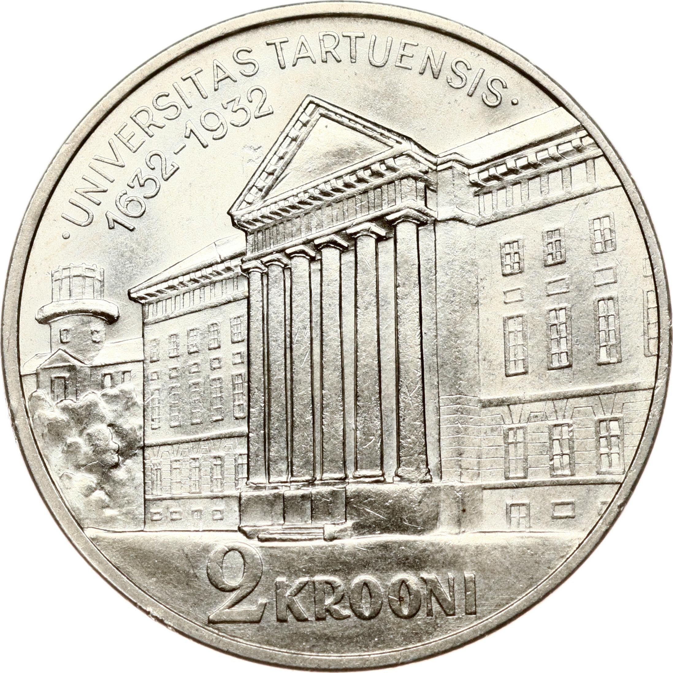Estonia. 2 Krooni 1932, Tercentenary - University of Tartu. Silver 12.02 g. KM 13. Dents on edge.
