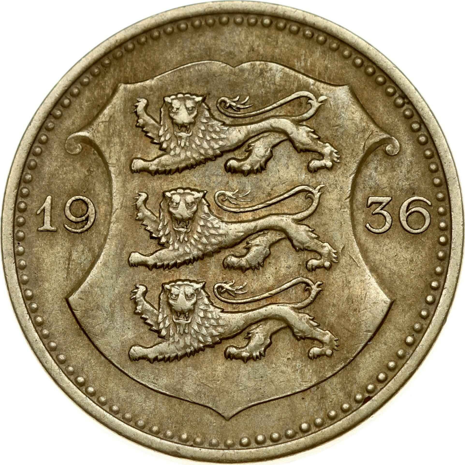 Estonia 50 Senti 1936 Obverse: National arms divide date. Reverse: Denomination. Edge Description: Plain. Nickel-Bronze. KM- 18; Kaupo Laan #21