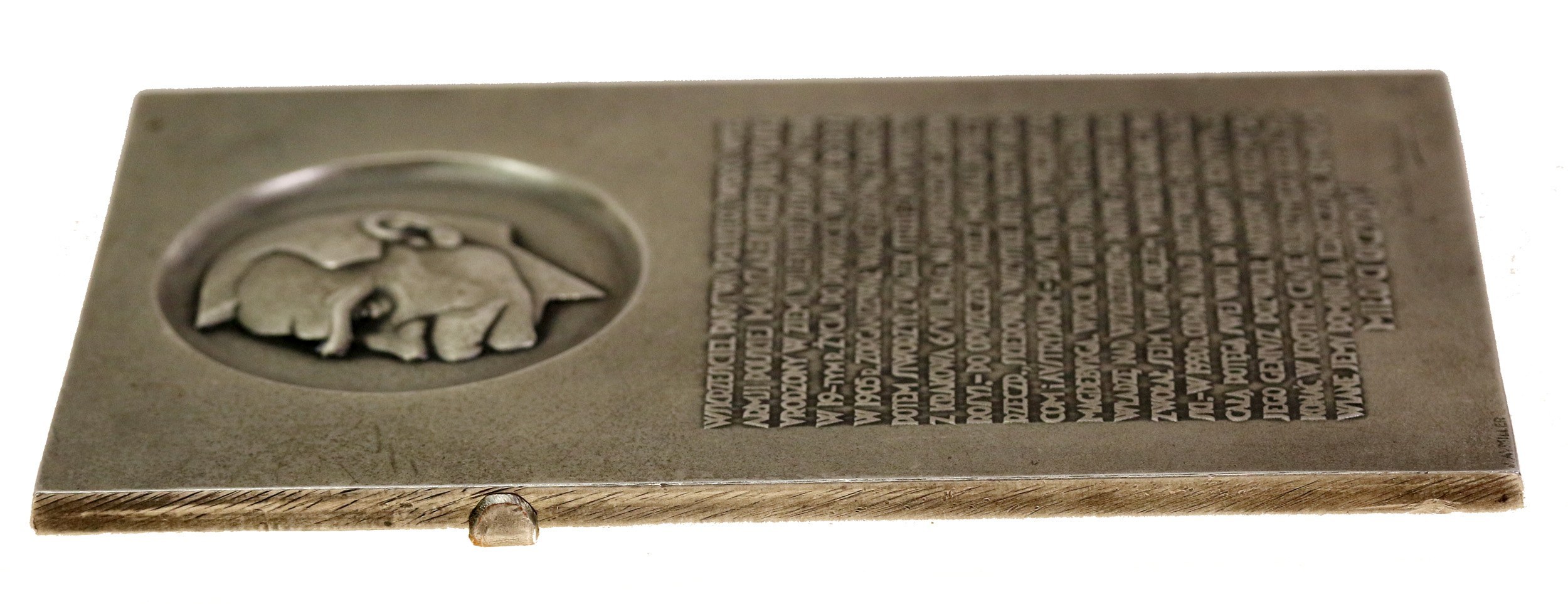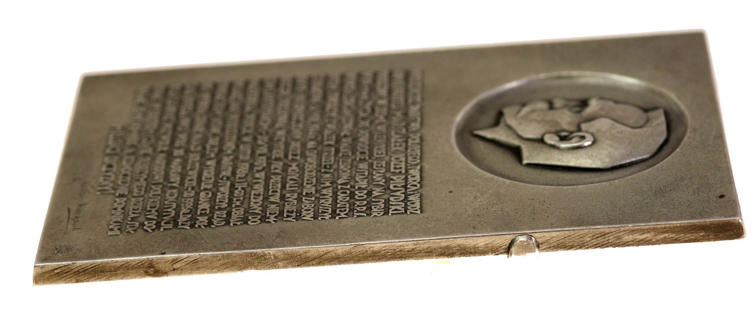 Przedmiot unikalny i prestiżowy, do najlepszych kolekcji. Strzałkowski w swoim katalogu podaje nakład ponad 10 sztuk. Stan zachowania bardzo dobry. Plakieta z patyną. Nie czyszczona. Literatura: Strzałkowski 41g