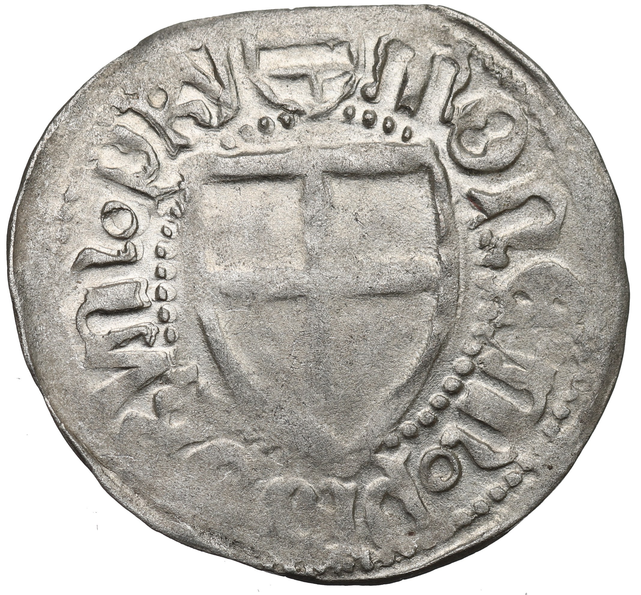 Rewers: w otoku perełkowym tarcza Zakonna, w otoku zewnętrznym legenda: