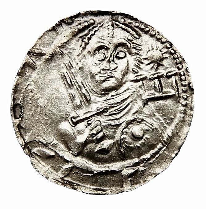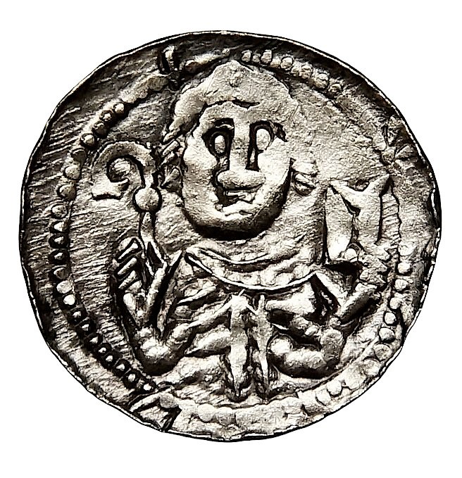 awers: postać księcia z mieczem i tarczą, w polu leżąca litera E a nad nią gwiazda