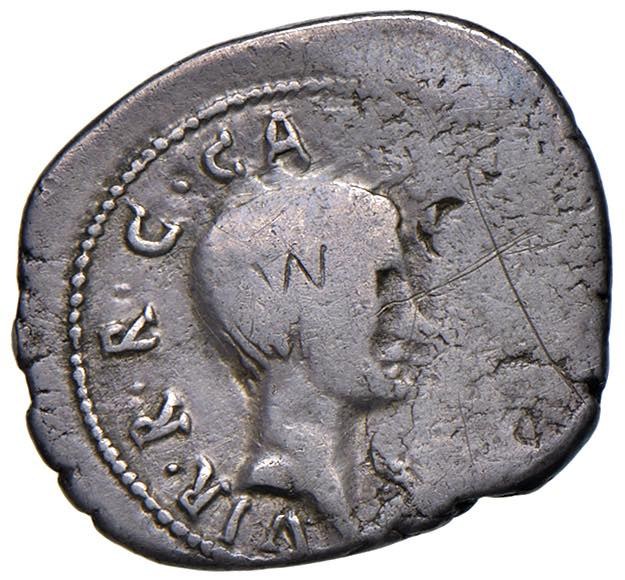 Lepido - Denario (zecca itinerante, 42 a.C.) Testa a d. - R/ Testa a d. di Ottaviano - Cr. 495/2a AG (g 3,89) RR Contromarche e graffietti. Da notare come la stragrande maggioranza di questi denari sia di bassa conservazione e presenti delle contromarche.
