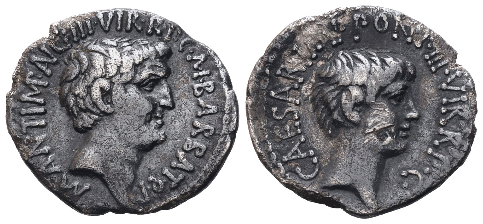 Mark Antony and Octavian, Denarius, 41 BC; AR (3,05 g; 18,2 mm; 12 h)