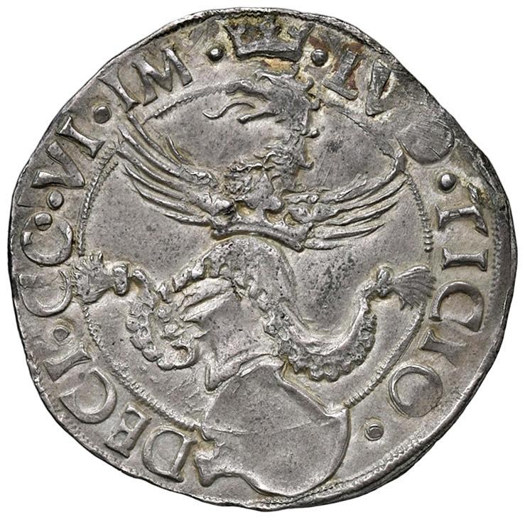 DESANA Ludovico II Tizzone (1510-1525) Cornuto - MIR 446 AG (g 5,3) RRR Moneta di rarissima apparizione ed esemplare di altissima qualità per la tipologia.