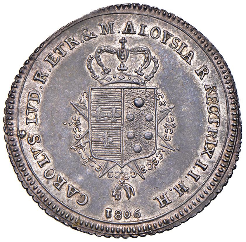 Italian coins - FIRENZE Carlo di Borbone (1803-1807) Lira 1806 - MIR 428 AG (g 3,92) Splendida patina. Colpetti al R/