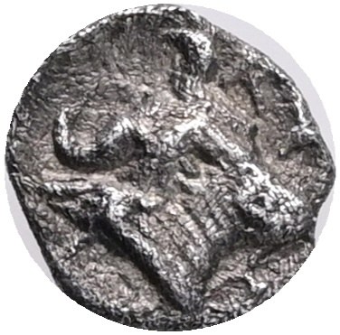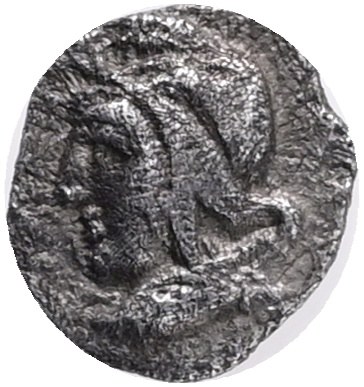 Mysia, Kyzikos, Hemiobol , 450-400 BC Obverse: head of Attis to left, wearing Phrygian cap Reverse: head and neck of bull to right, SNG von Aulock 7336 ,Diameter 8 mm silver, weight 0.33 g