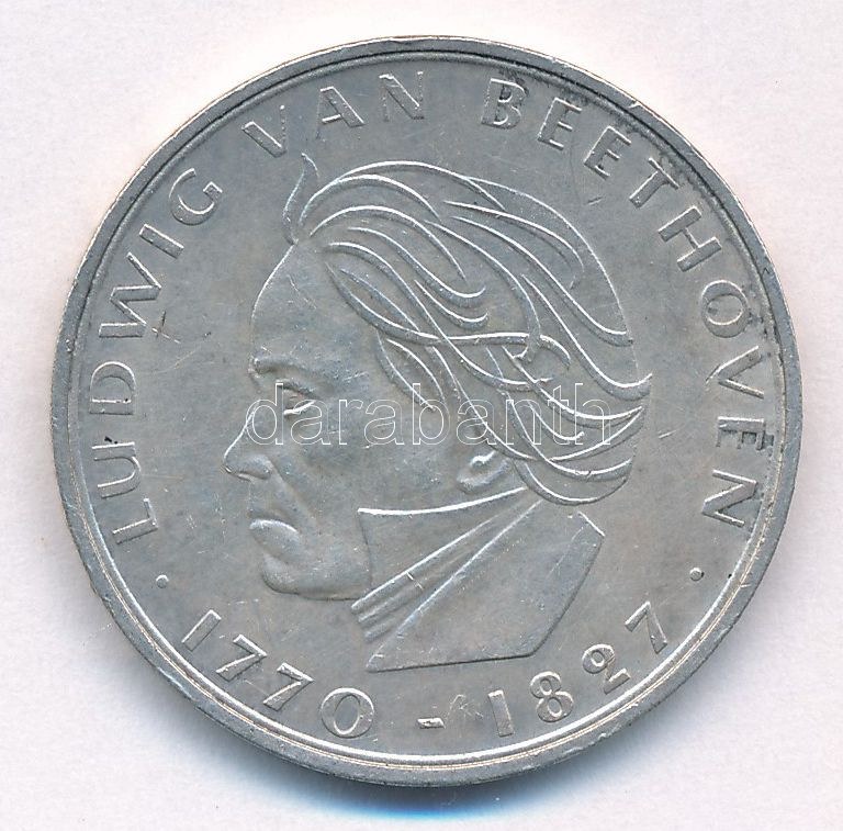 Német Szövetségi Köztársaság 1970F 5M Ag "Beethoven" T:AU,XF Federal Republic Germany 1970F 5 Mark Ag "Beethoven" C:AU,XF Krause KM# 127
