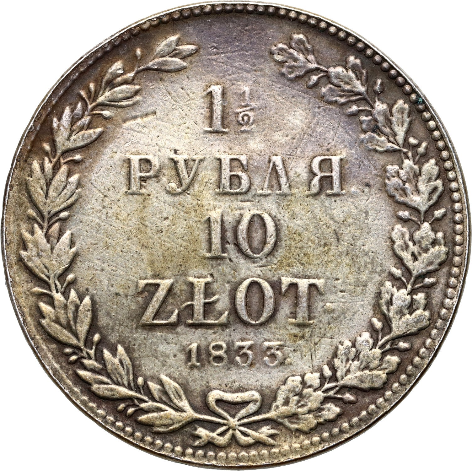 Zabór rosyjski, Mikołaj I, 1 1/2 rubla = 10 złotych 1833 НГ, Petersburg