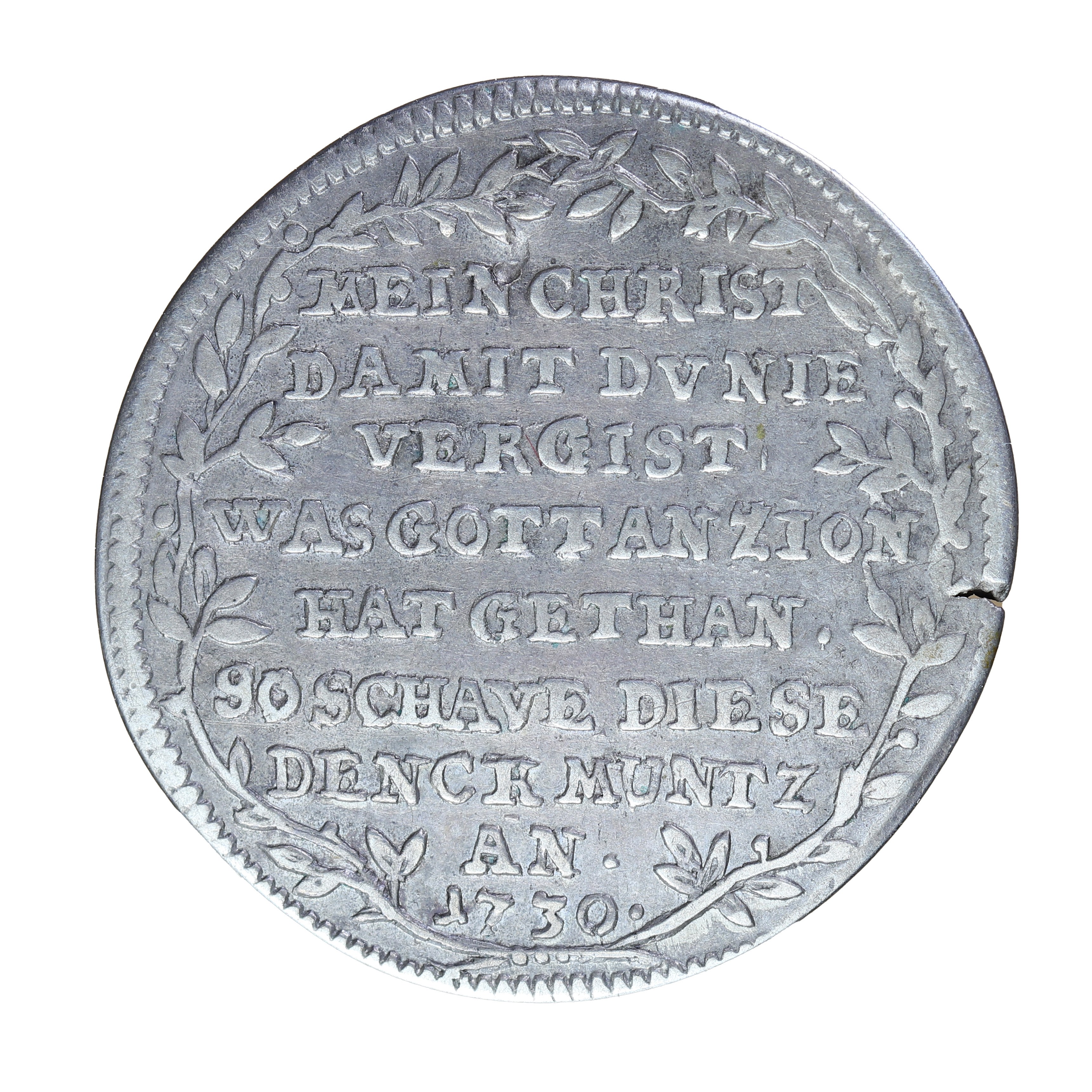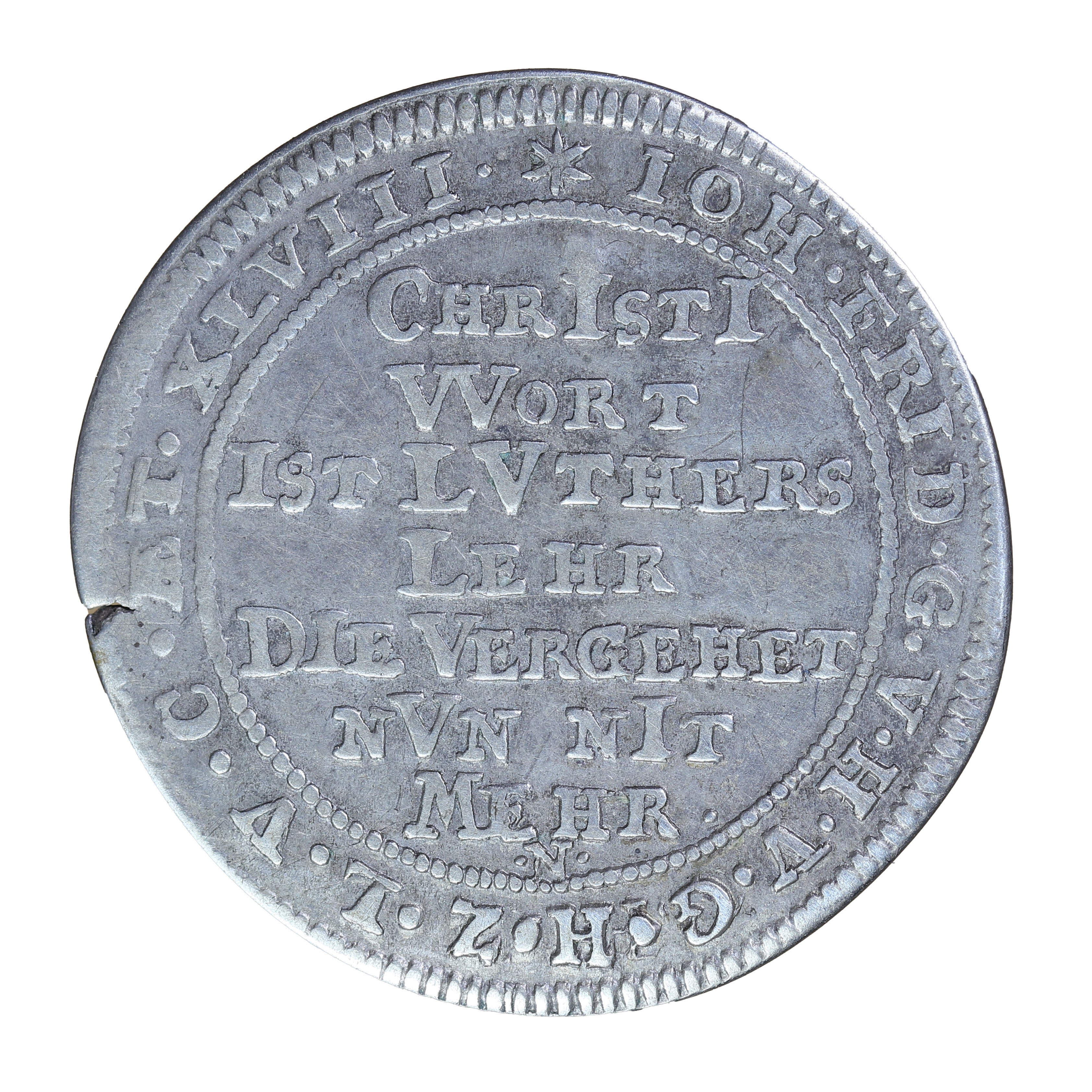 Srebro, waga: 2,15 g, średnica: 23,50 mm, Księstwo Hohenlohe - Neuen Stein - Ohringen, moneta wybita w dwusetną rocznicę Konfesji Augsburgskiej, rzadki typ monety, Albrecht 158