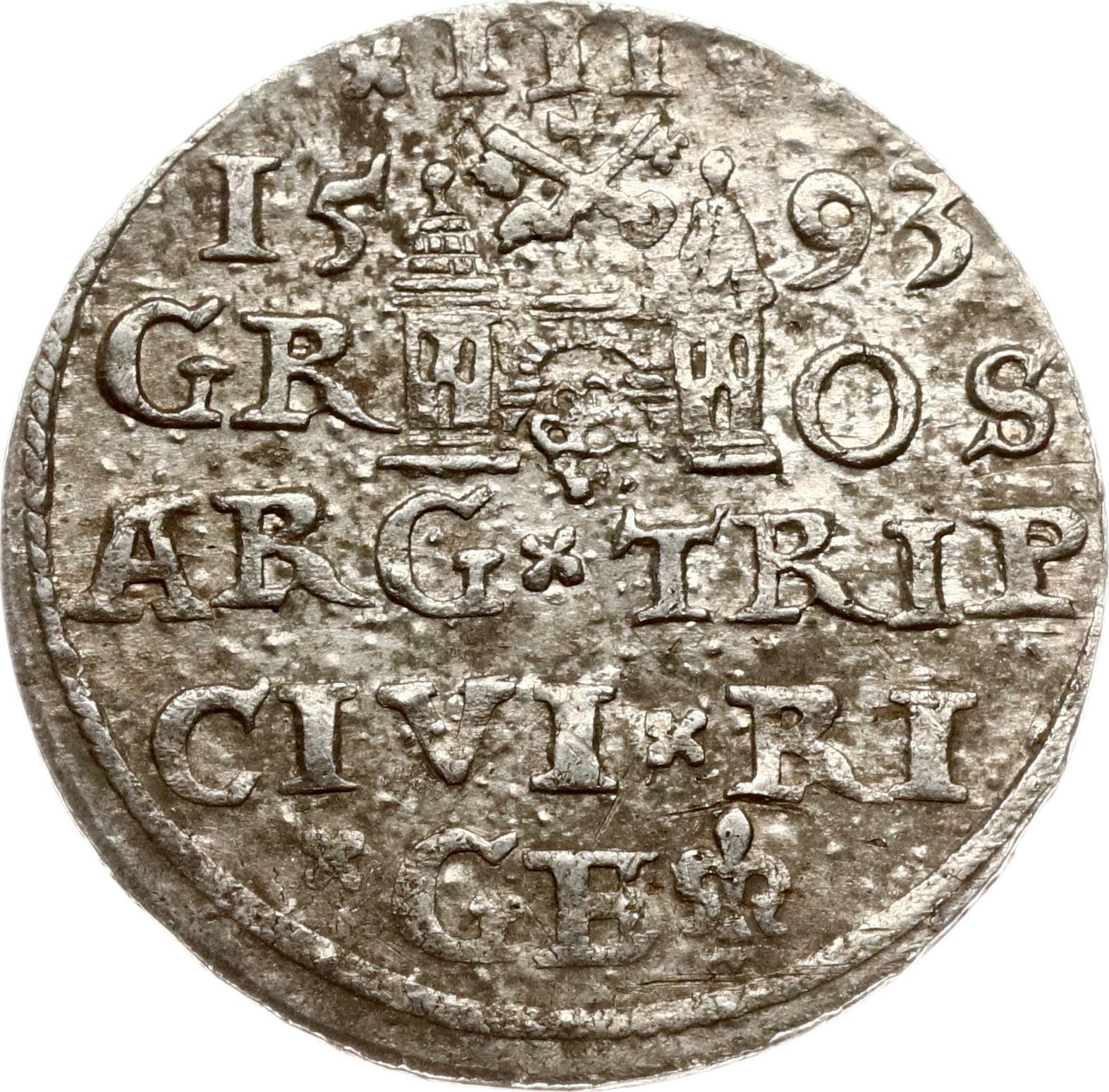 Poland. Zygmunt III Waza (1587–1632). Trojak 1593, Riga. Silver 2.19 g. Iger R.93.