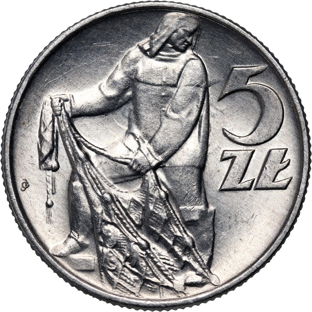 PRL, 5 złotych 1959, Rybak, SŁONECZKO