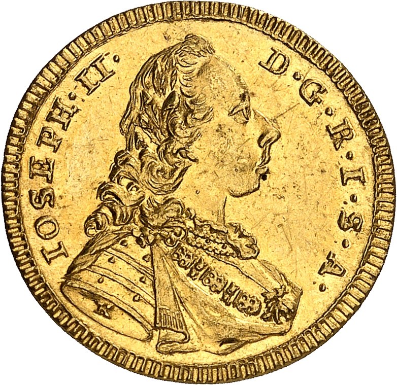 Av. IOSEPH. II. - D. G. R. I. S. A. Buste lauré, drapé et cuirassé, avec la Toison d’Or, à droite ; signature K sur l’épaule.