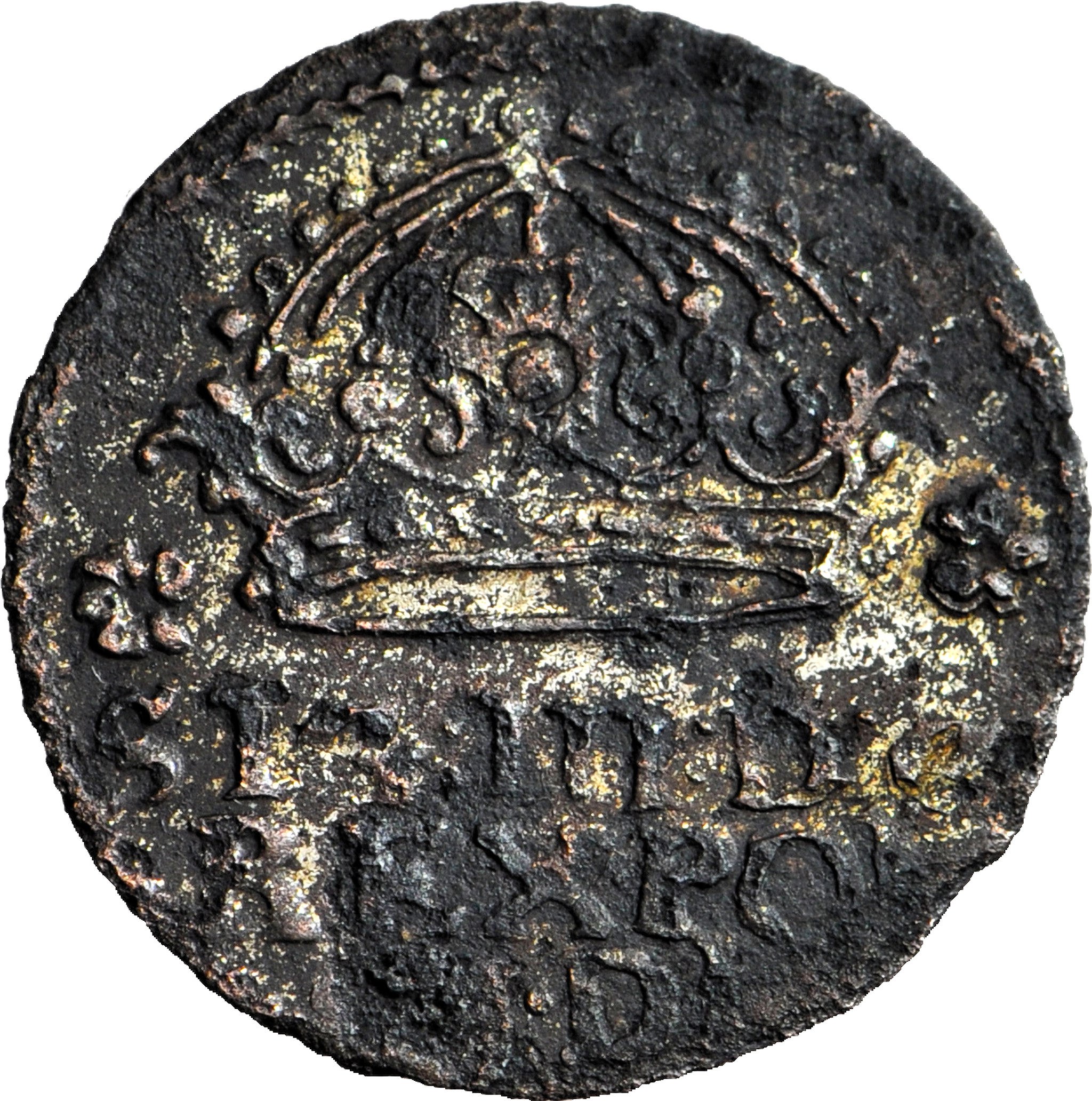 Wysokiej klasy fałszerstwo, wybite w srebrzonej miedzi. Doskonały styl, brak błędów w legendzie. Fałszerstwo być może wykonane w słynnej mennicy na zamku w Żywcu( więcej o mennicy - http://blognumizmatyczny.pl/2022/12/13/mikolaj-komorowski-i-falszerska-mennica-w-zywcu/ ). Bardzo ciekawa moneta, rzadkość.