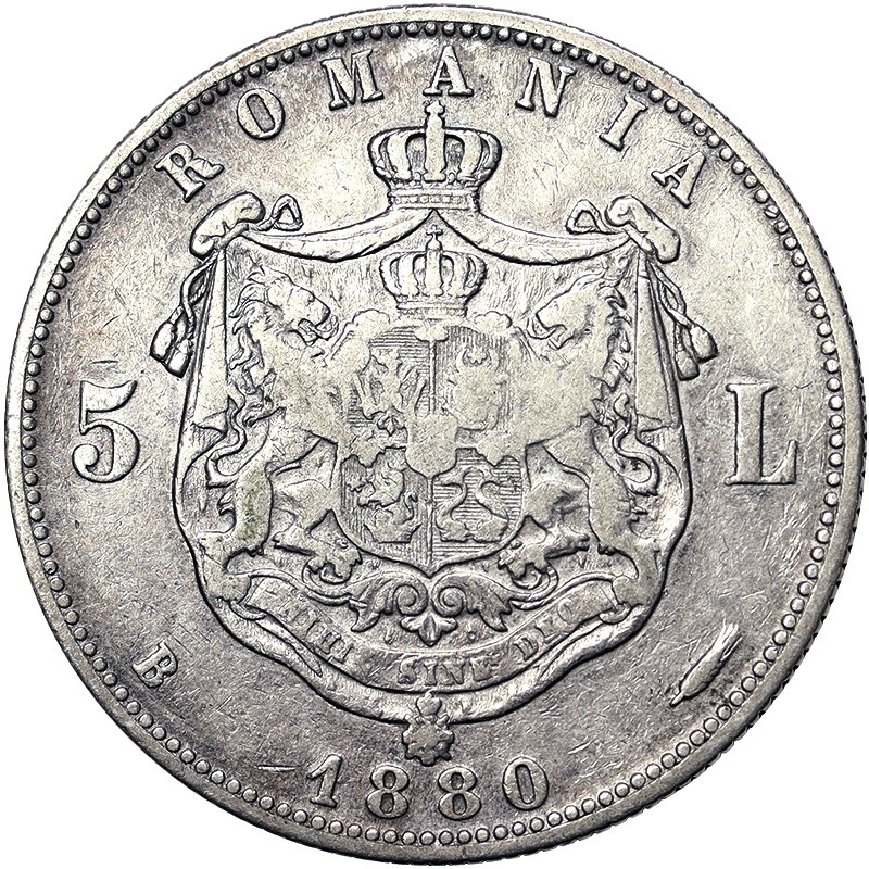 Romania, Carol I as Prince as King, 5 Lei 1880, Bucharest