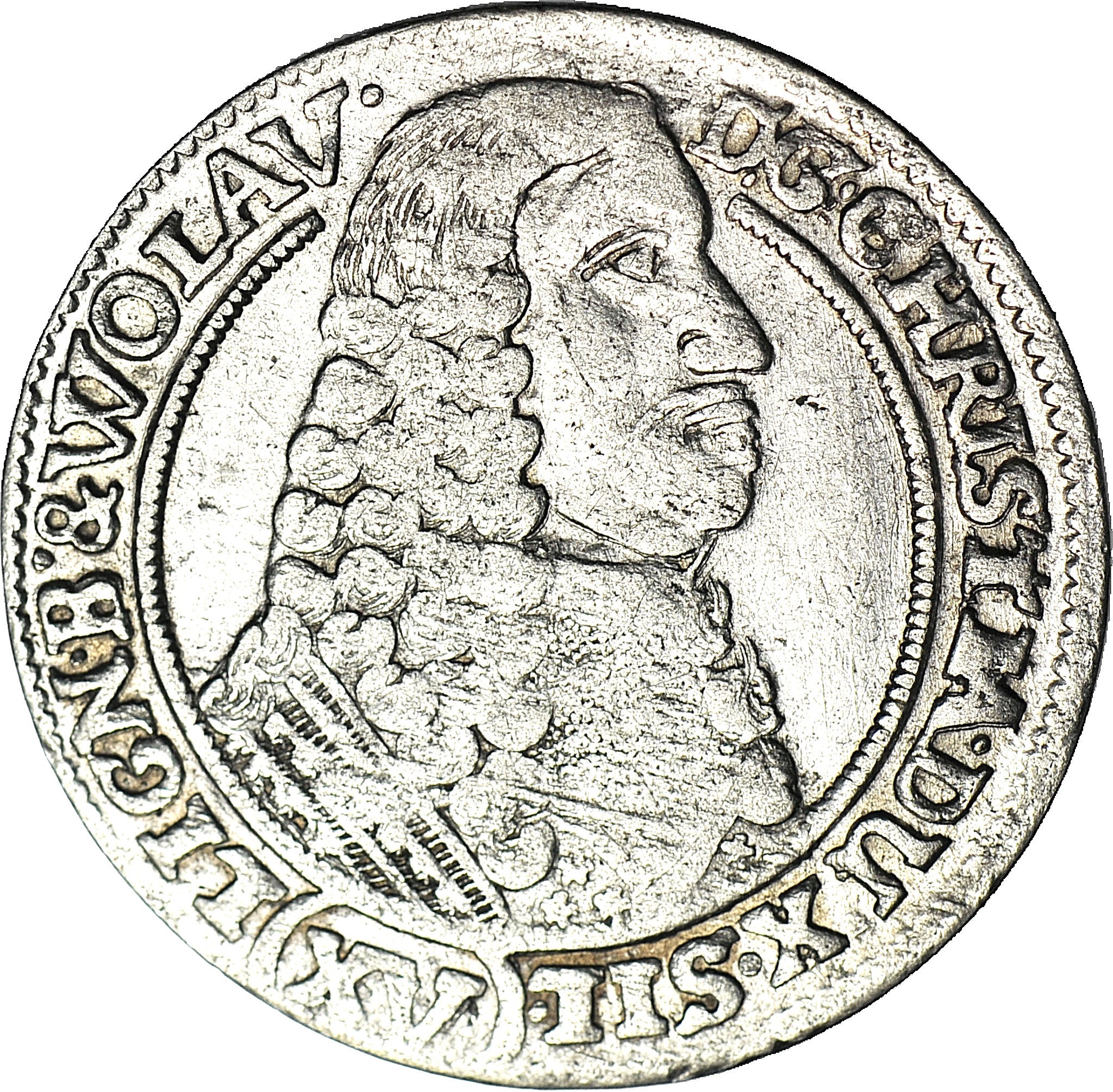 Wyjątkowy i niespotykany typ z błędną w stosunku do powszechnie stosowanych legendą otokową awersu z zapisem CHRISTIA (zamiast CHRYSTIAN) – dodatkowo z nietypowym zapisem liter IA (złączonymi jak w ligaturze). Na rewersie znak Christiana Pfahlera młodszego – serce z krzyżem. Co więcej moneta wybita stemplem odwróconym o 180 stopni. Wyjątkowy numizmat do najlepszych kolekcji!